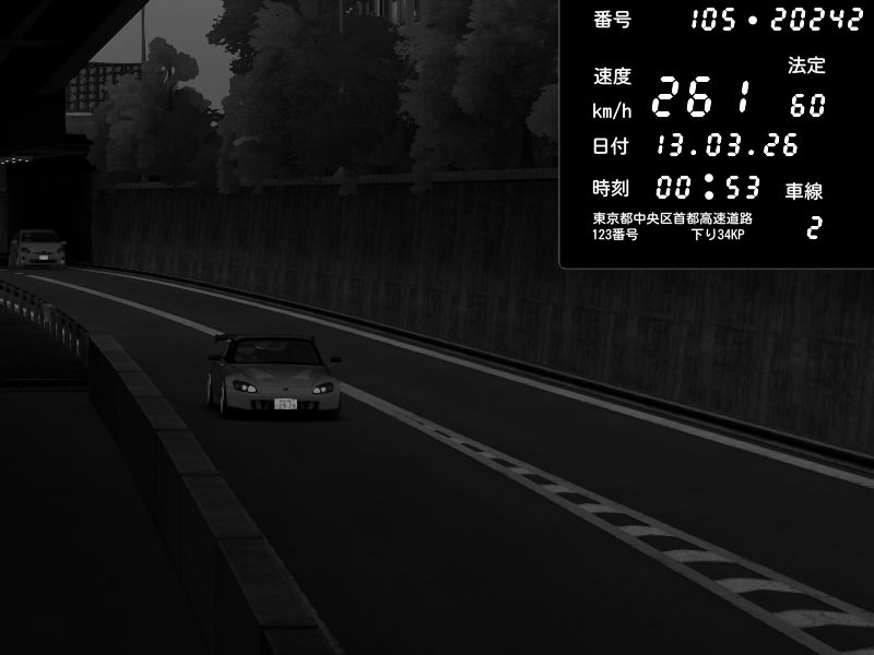 | 2026/03/12 03:11 | 1号下り 平和島 | 269 / 60 km/h | Txm266 | Mazda RX-7 FD3S FEED Afflux GT3 | CAPTURE |