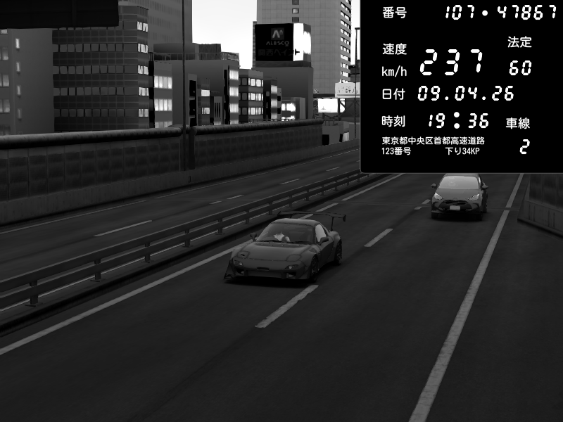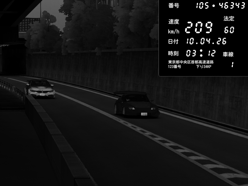 | 2026/04/10 03:44 | C1外回り 新富町 | 199 / 60 km/h | Ace.H_drift | Honda S2000 Turbo GT1 Amuse (AP1) | CAPTURE |