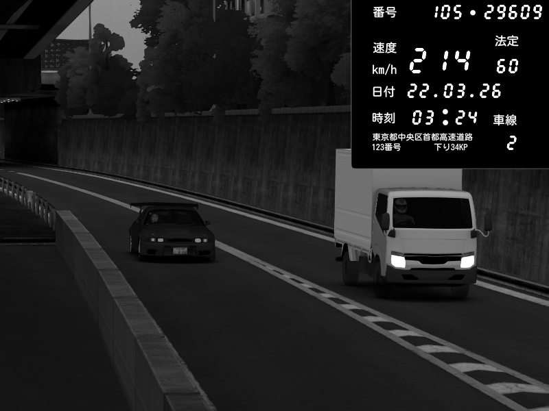 | 2026/03/21 22:34 | C1外回り 芝公園 | 265 / 60 km/h | Raven | Pit Road M - Mitsubishi GTO Twin Turbo | CAPTURE |