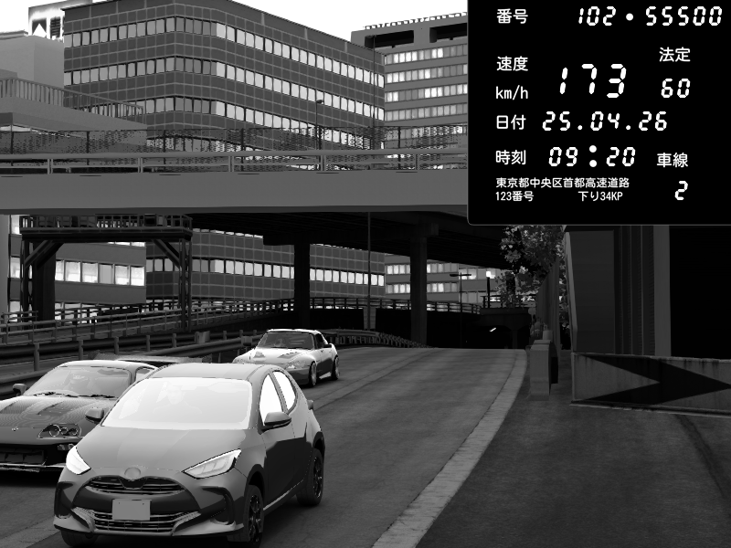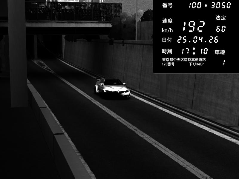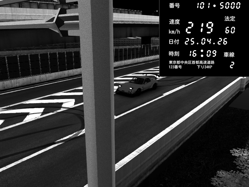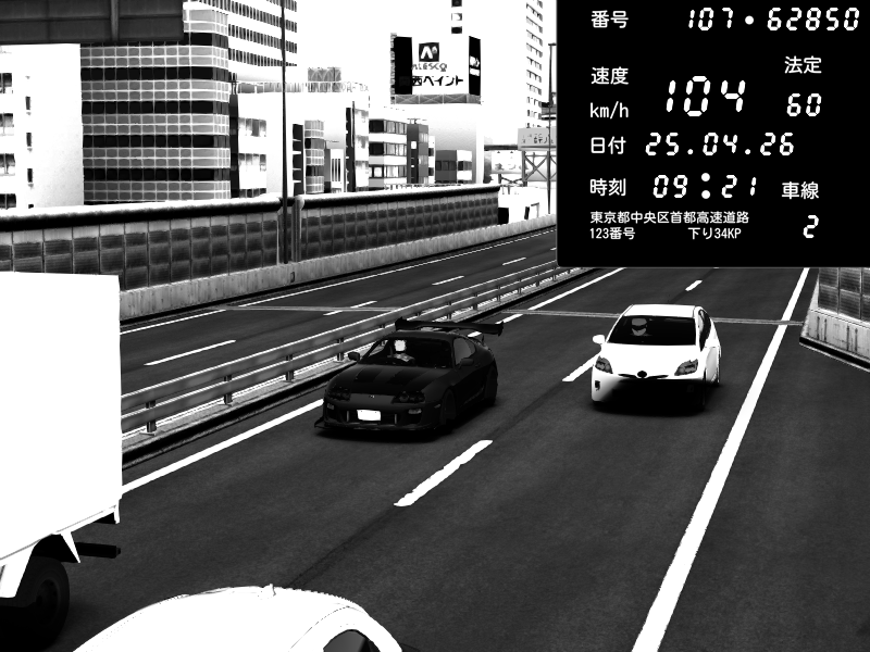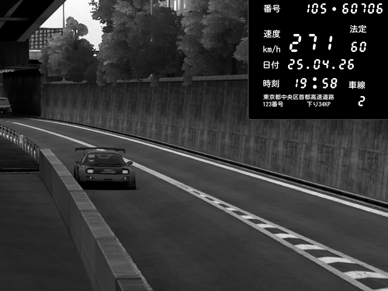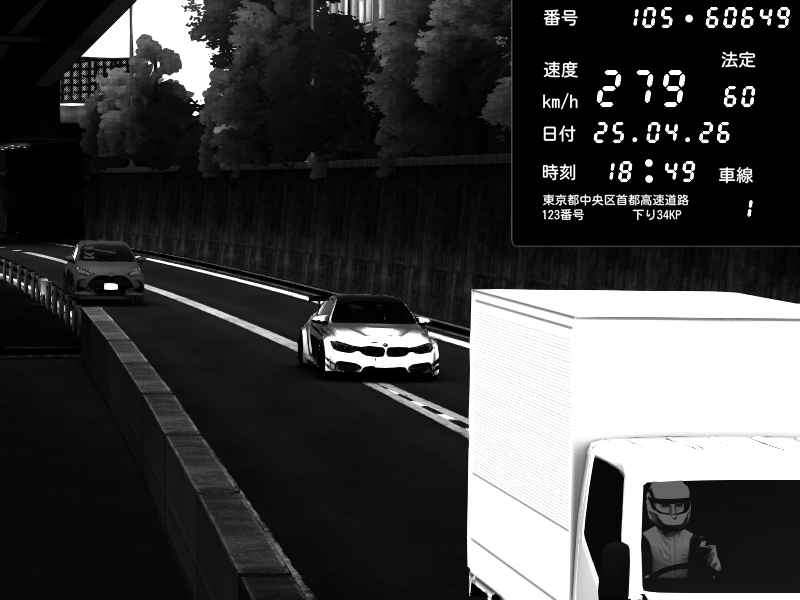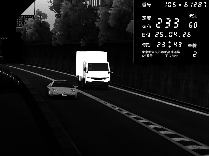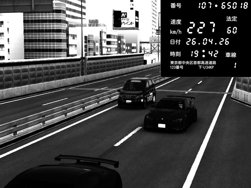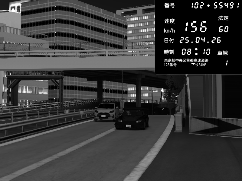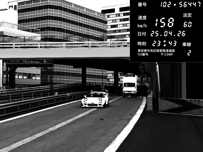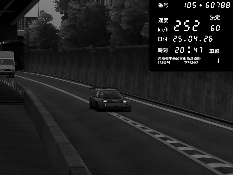 | 2026/04/25 19:58 | C1外回り 新富町 | 191 / 60 km/h | Pixy | Pit Road M - Mitsubishi GTO Twin Turbo | CAPTURE |
