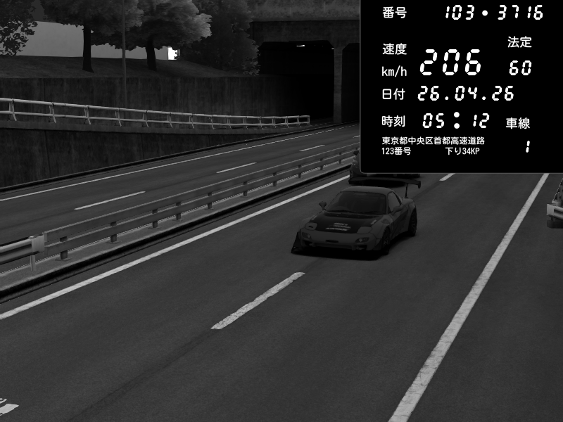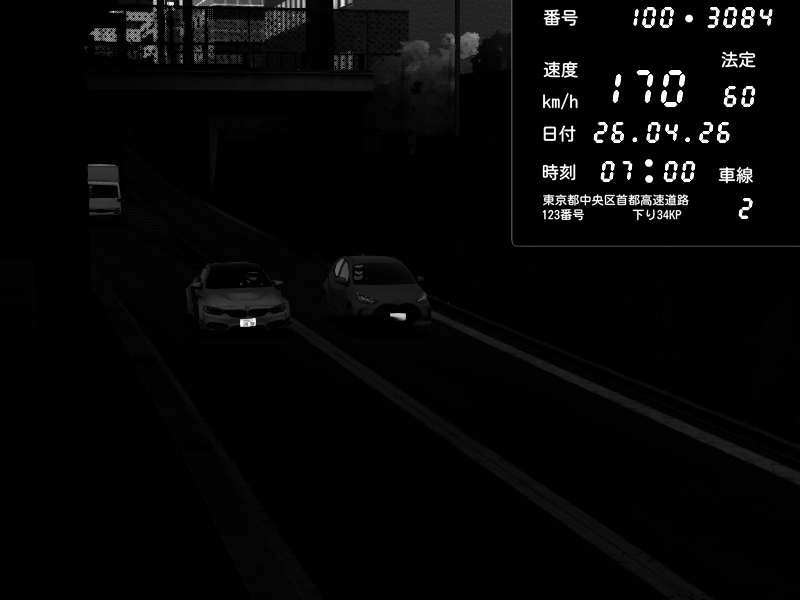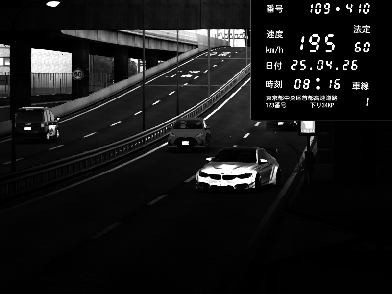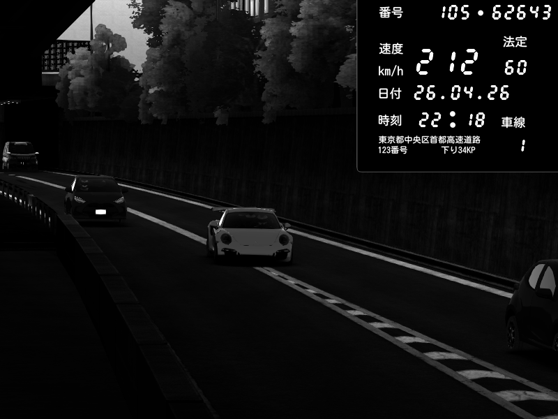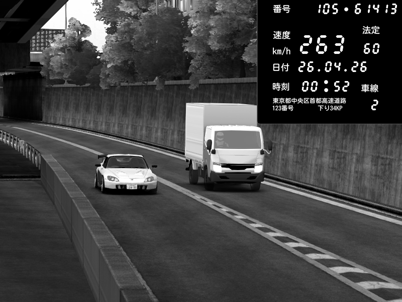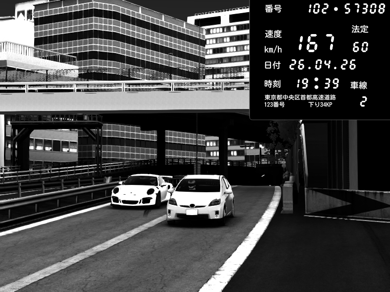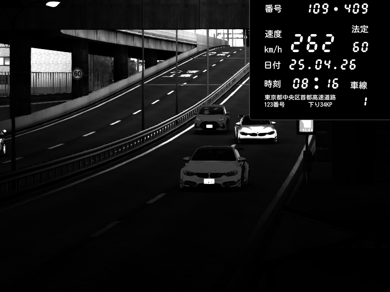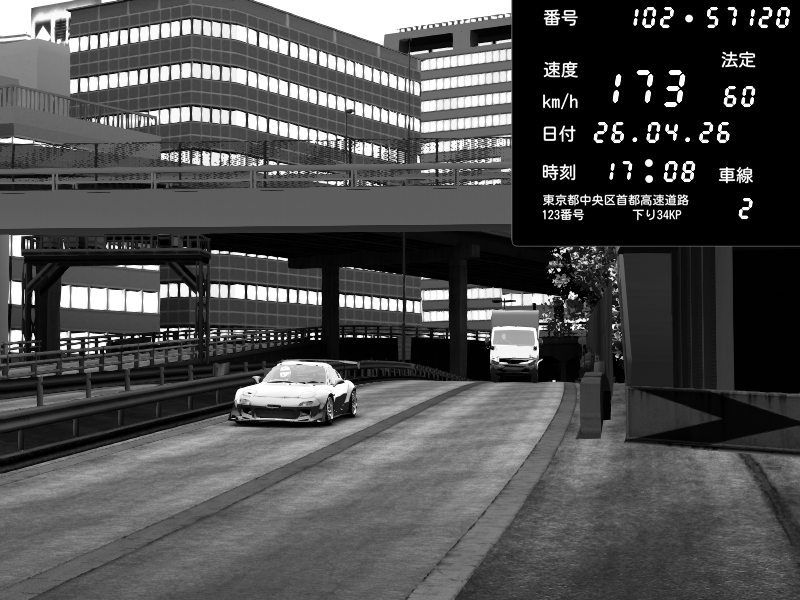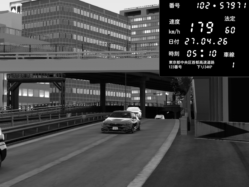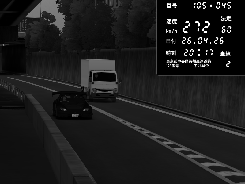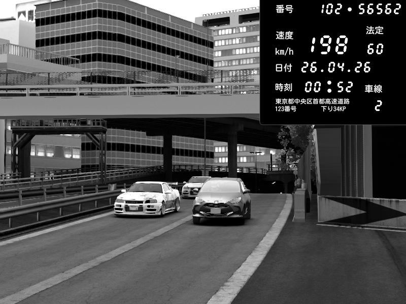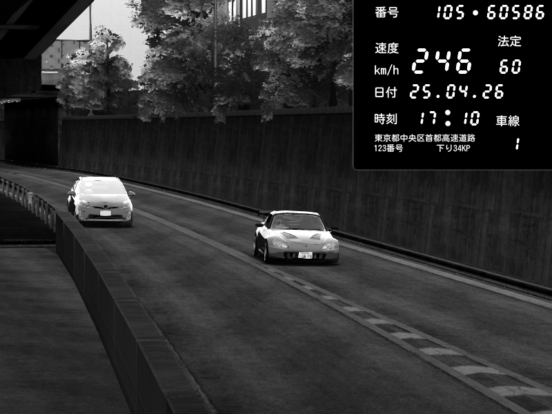 | 2026/04/25 19:58 | C1外回り 新富町 | 191 / 60 km/h | Pixy | Pit Road M - Mitsubishi GTO Twin Turbo | CAPTURE |