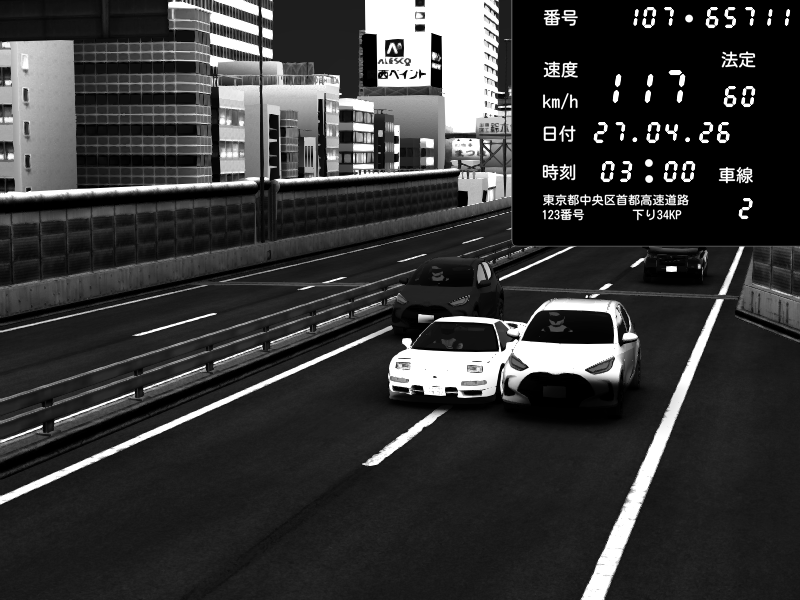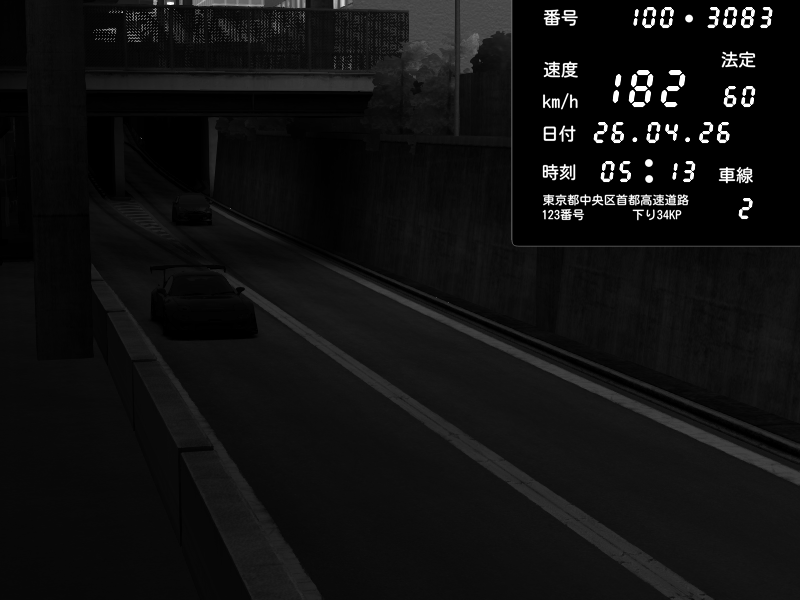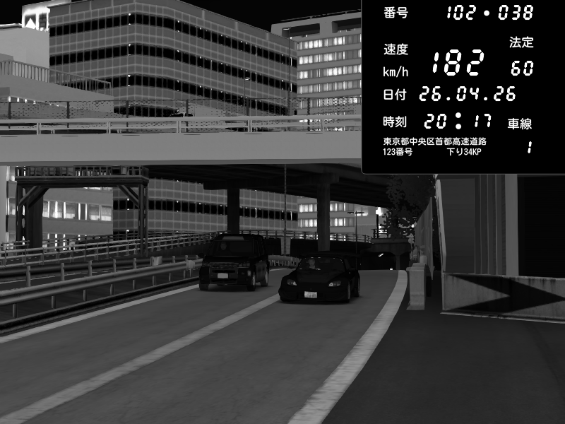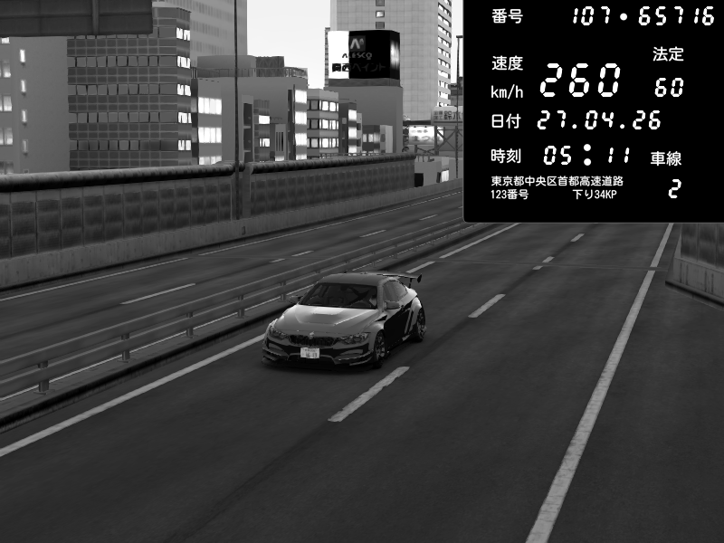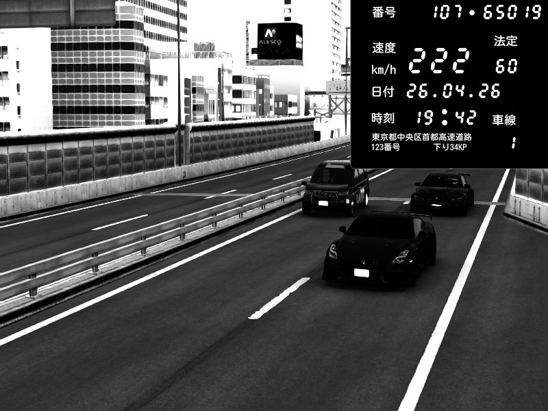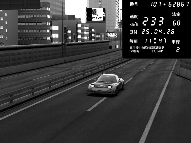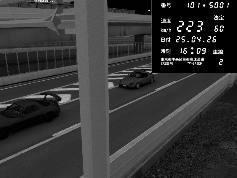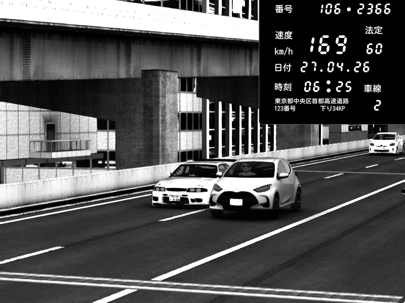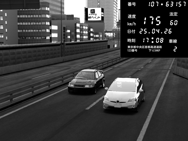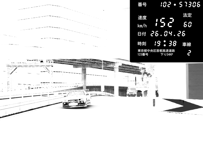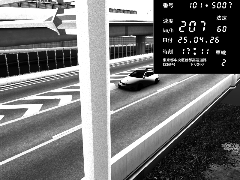 | 2026/04/25 19:58 | C1外回り 新富町 | 191 / 60 km/h | Pixy | Pit Road M - Mitsubishi GTO Twin Turbo | CAPTURE |
