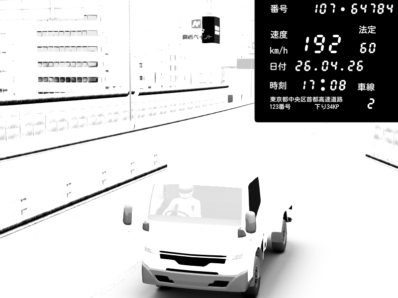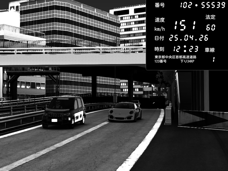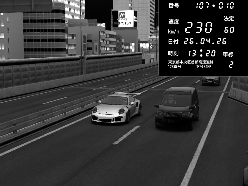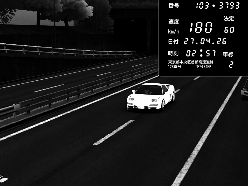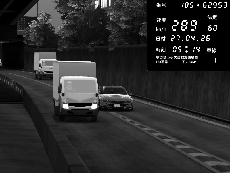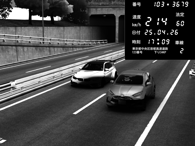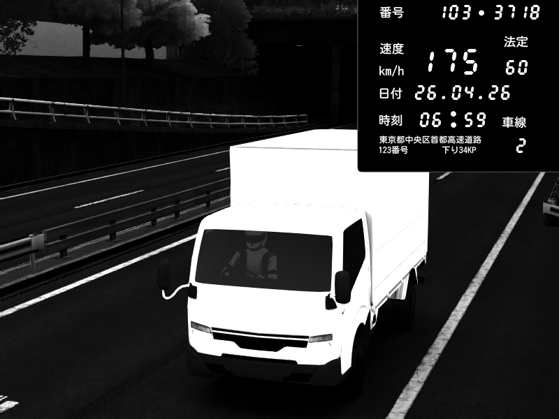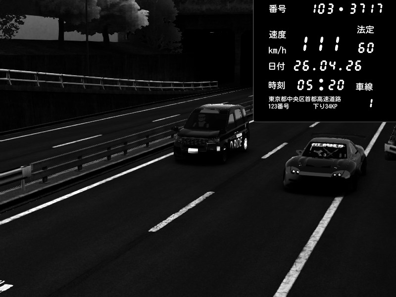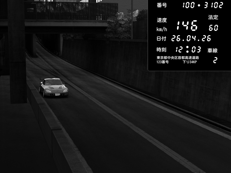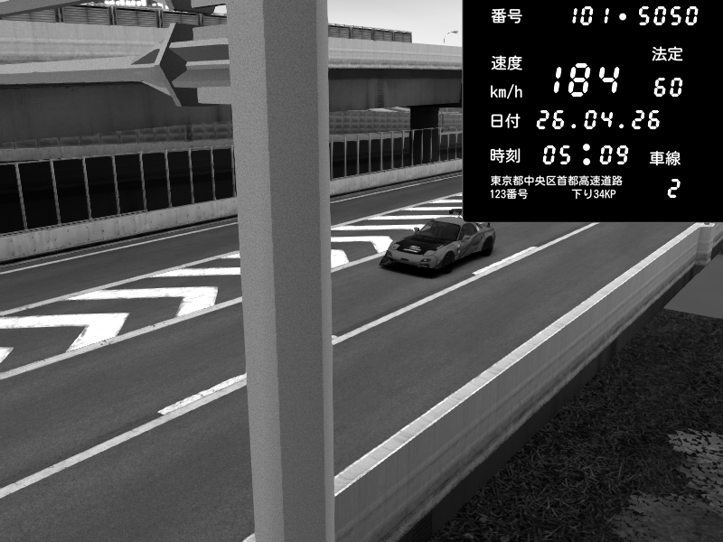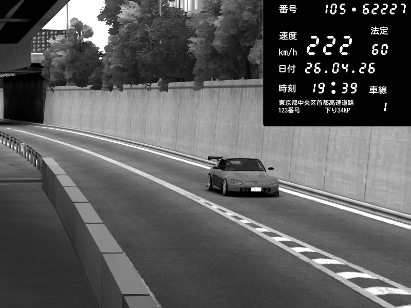 | 2026/04/25 19:58 | C1外回り 新富町 | 191 / 60 km/h | Pixy | Pit Road M - Mitsubishi GTO Twin Turbo | CAPTURE |