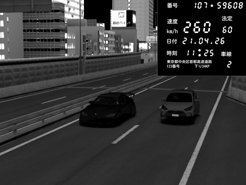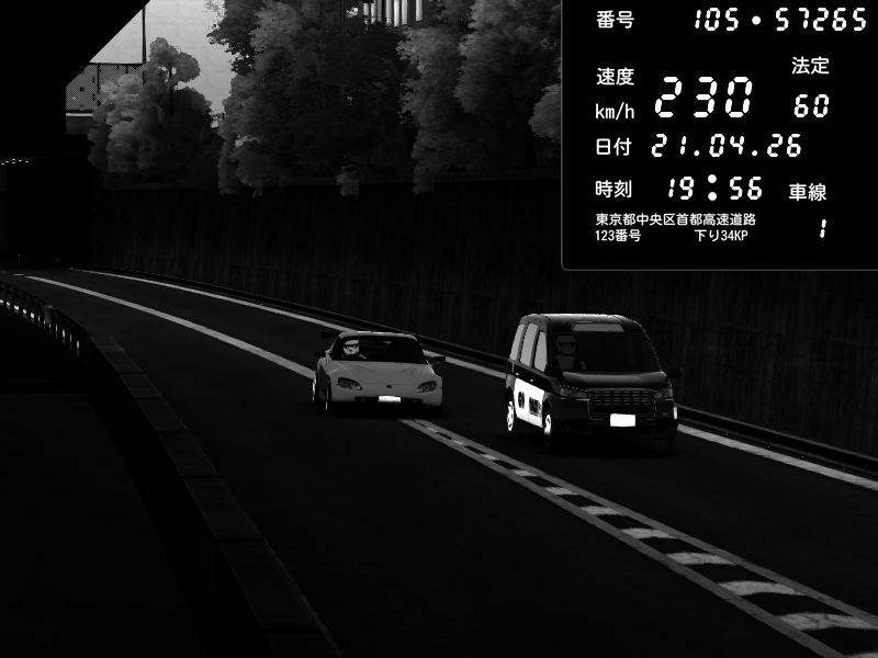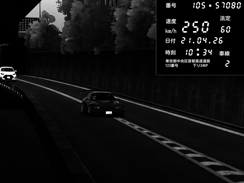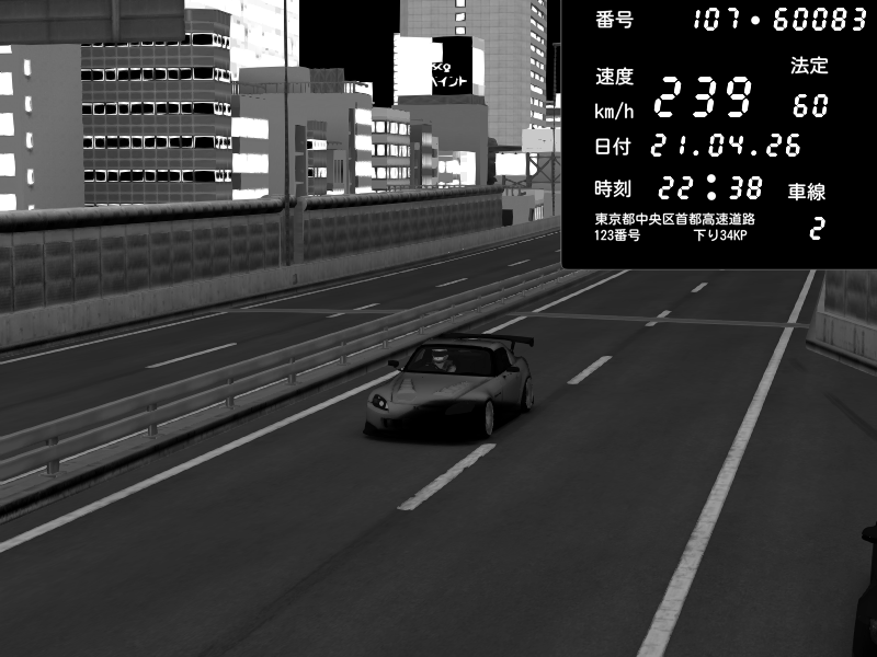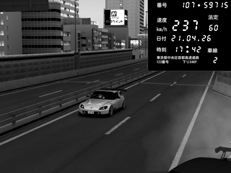 | 2026/04/20 18:57 | C1外回り 京橋 | 265 / 60 km/h | 【626】うえむぅ | Honda S2000 (AP2 - Legendary) | CAPTURE |