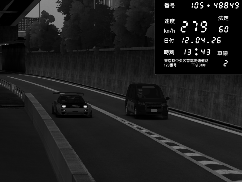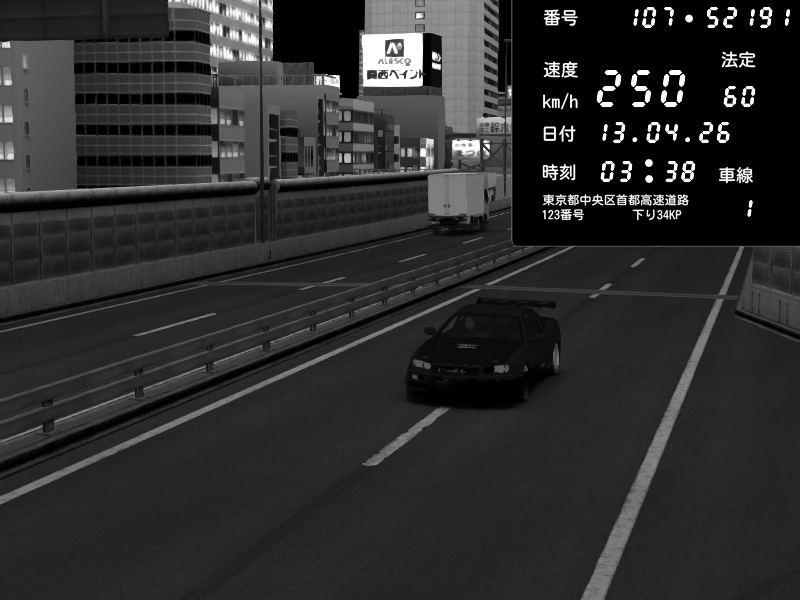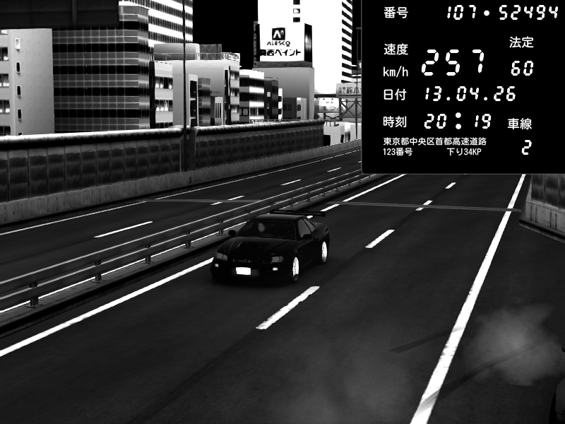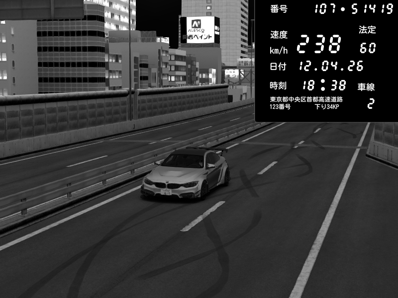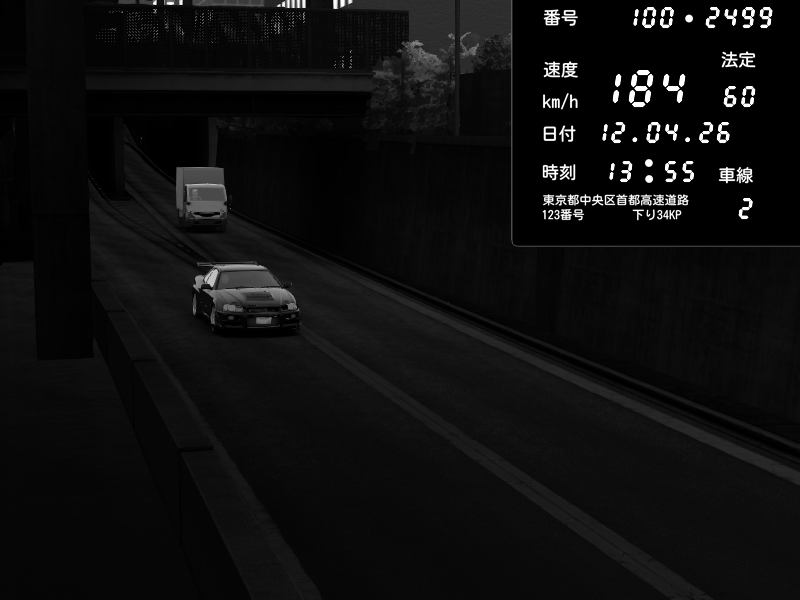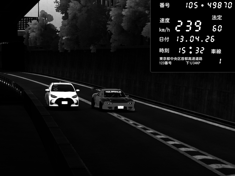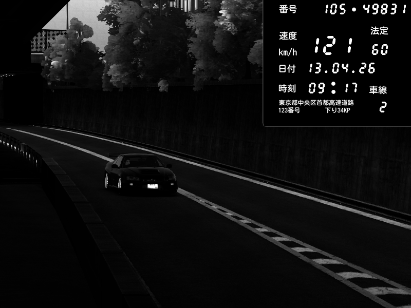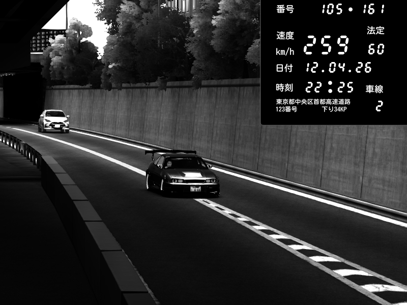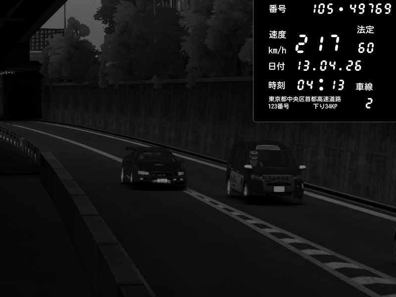 | 2026/04/13 03:39 | C1外回り 京橋 | 238 / 60 km/h | nightora2231 | Nissan Skyline GTR R33 (S3 - Wangan) | CAPTURE |
