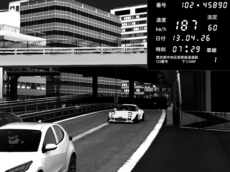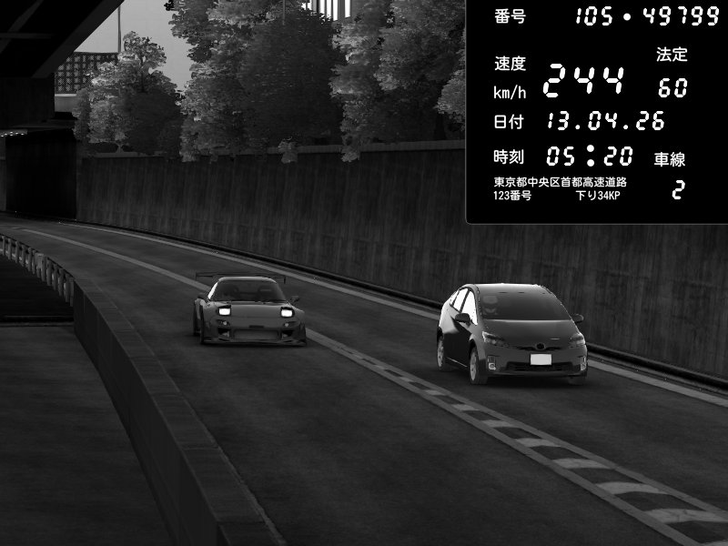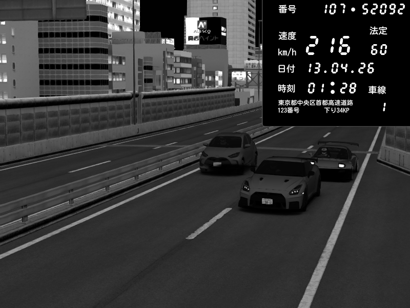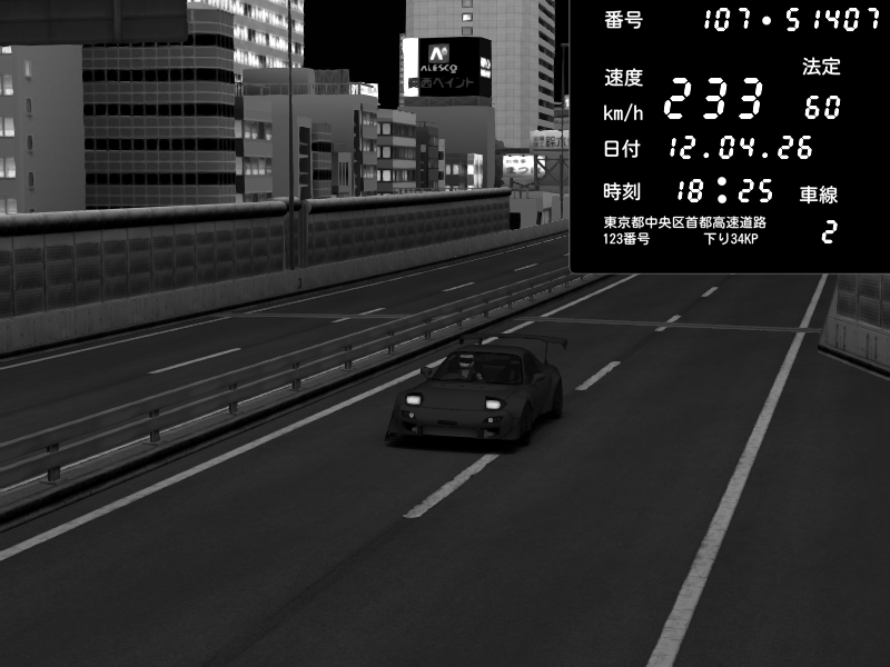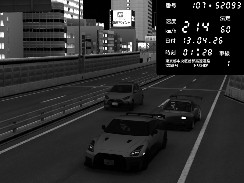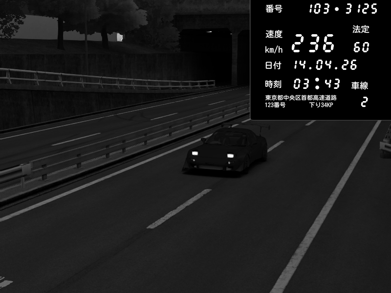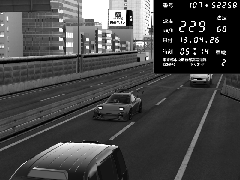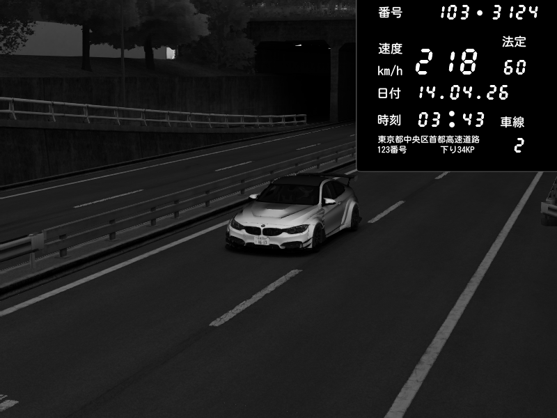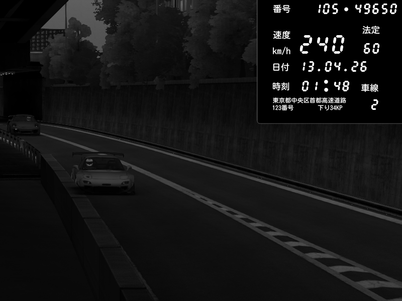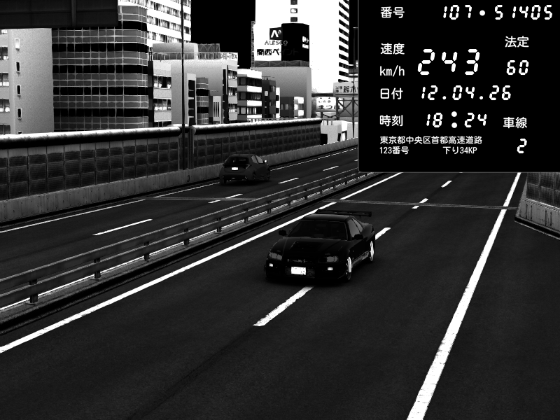 | 2026/04/13 03:39 | C1外回り 京橋 | 238 / 60 km/h | nightora2231 | Nissan Skyline GTR R33 (S3 - Wangan) | CAPTURE |