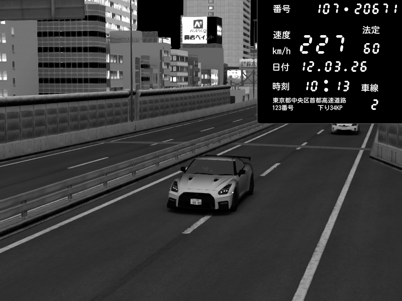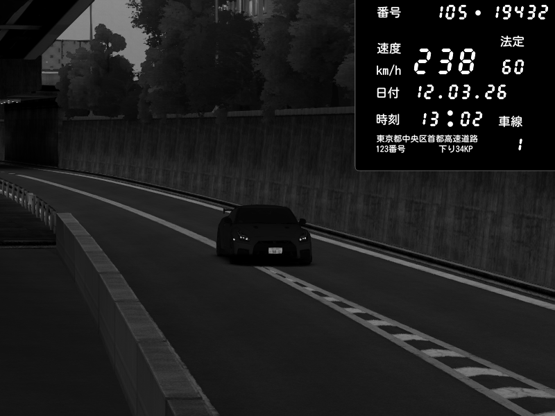 | 2026/03/12 02:58 | 9号下り 木場 | 144 / 60 km/h | Player | Nissan GT-R NISMO 2017 | CAPTURE |