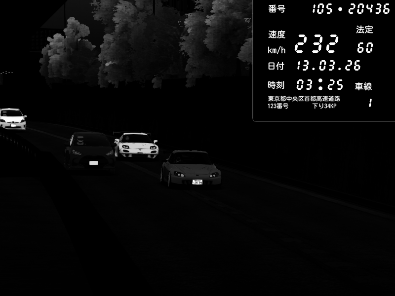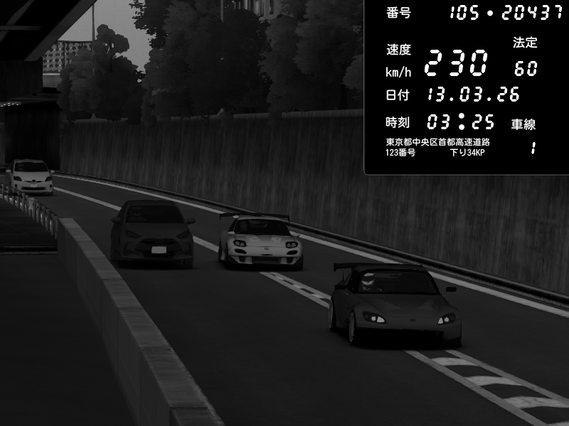 | 2026/03/12 03:11 | 1号下り 平和島 | 260 / 60 km/h | yung | Mazda RX-7 FD3S FEED Afflux GT3 | CAPTURE |