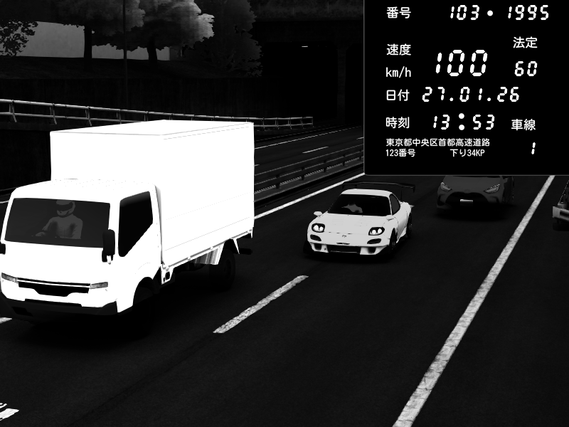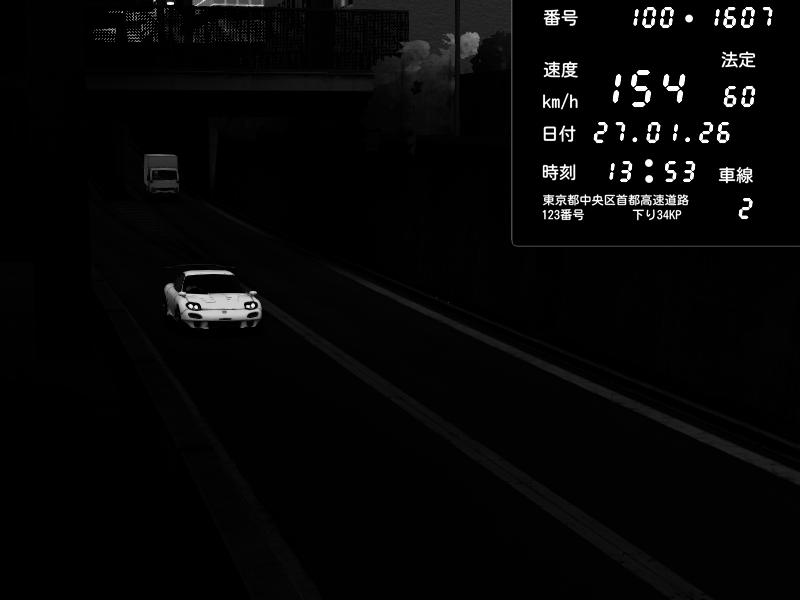 | 2026/01/27 19:58 | C1外回り 新富町 | 187 / 60 km/h | HellAkey | Mazda RX-7 FD3S FEED Afflux GT3 | CAPTURE |