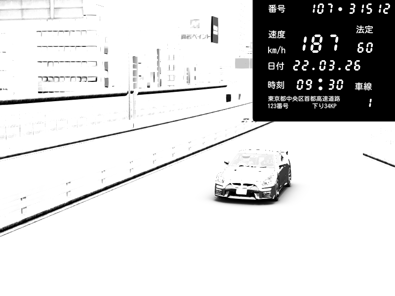 | 2026/03/24 03:30 | C1外回り 京橋 | 277 / 60 km/h | RiTZ | Nissan GT-R NISMO 2017 | CAPTURE |