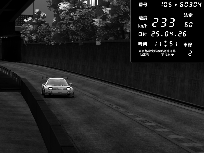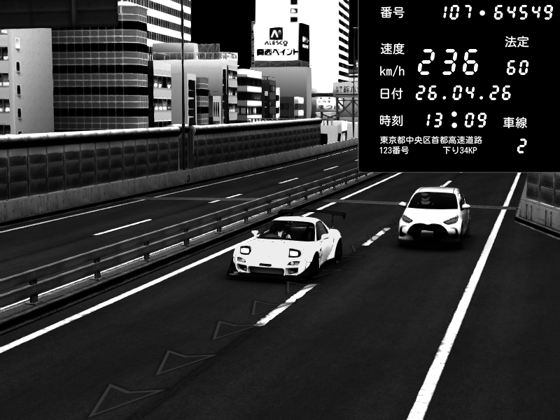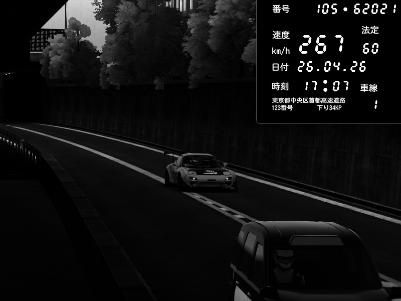 | 2026/04/25 19:59 | C1外回り 京橋 | 271 / 60 km/h | ℞ Your pace let's dance | Mazda RX-7 FD3S FEED Afflux GT3 | CAPTURE |