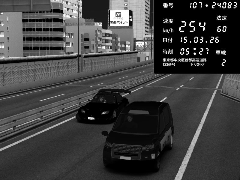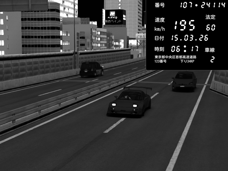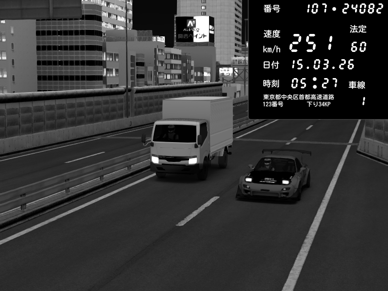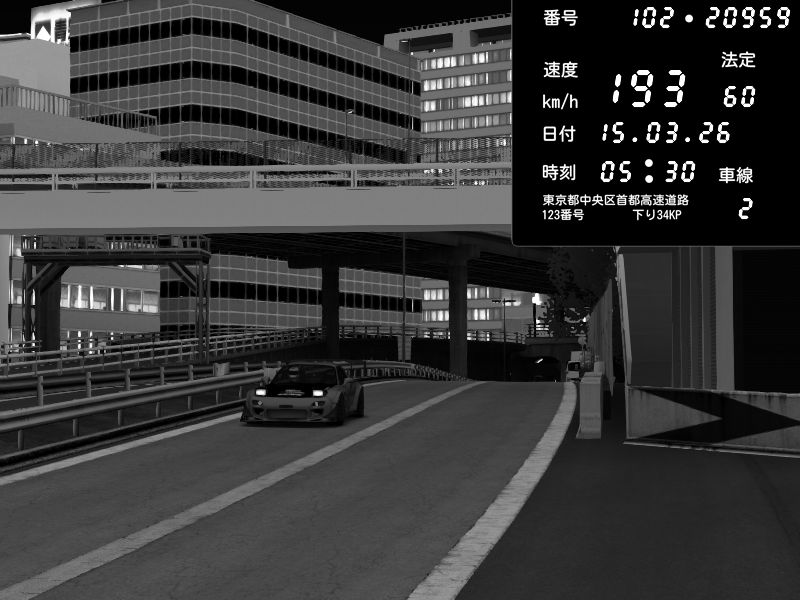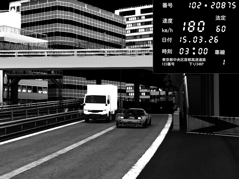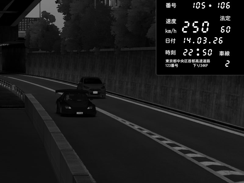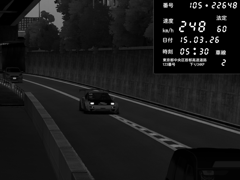 | 2026/03/15 03:00 | C1外回り 芝公園 | 252 / 60 km/h | Shinra | Honda S2000 Turbo GT1 Amuse (AP1) | CAPTURE |