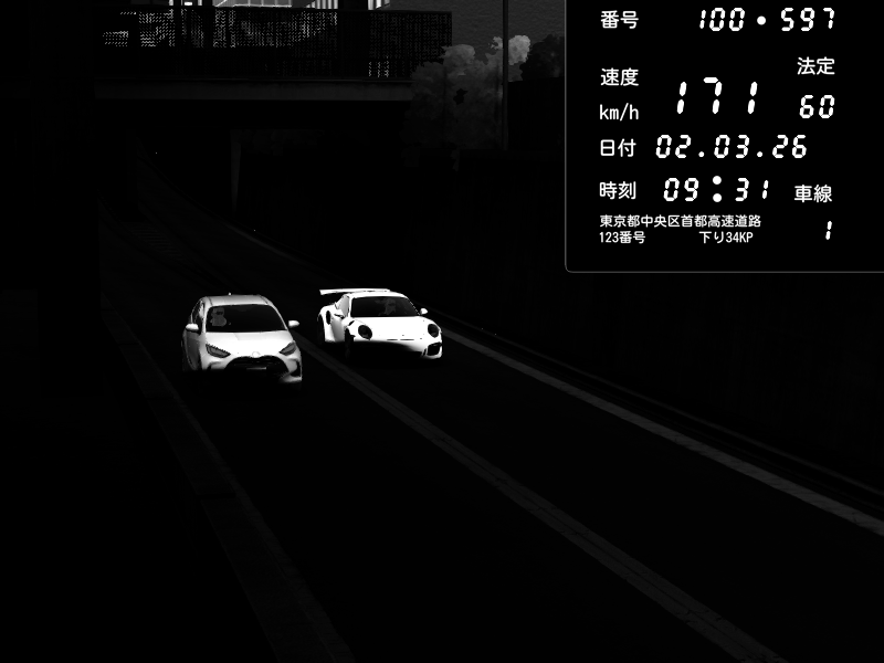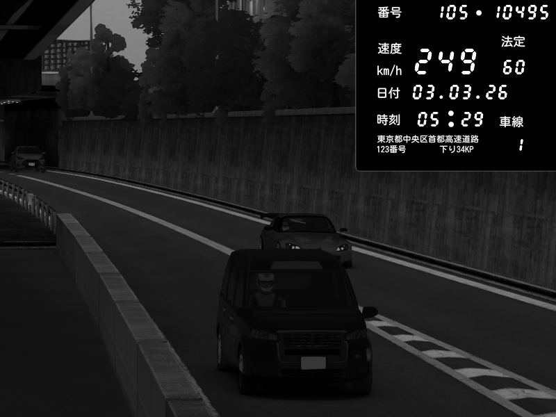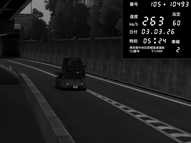 | 2026/03/03 05:29 | C1外回り 京橋 | 249 / 60 km/h | Twinnn Diesel | Honda S2000 (AP2 - Legendary) | CAPTURE |