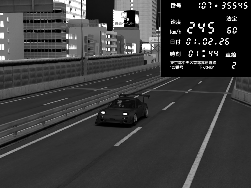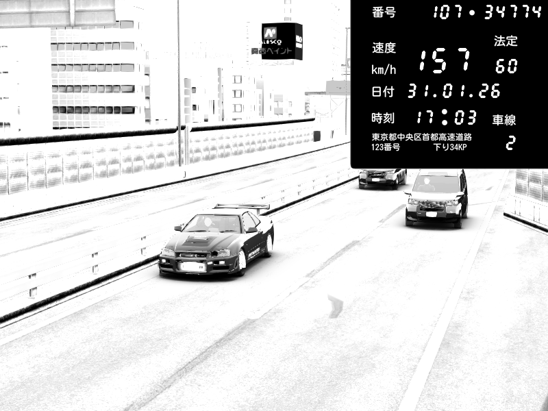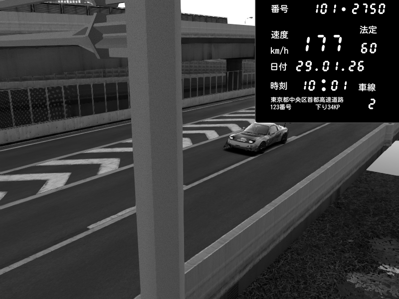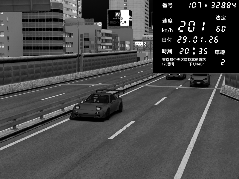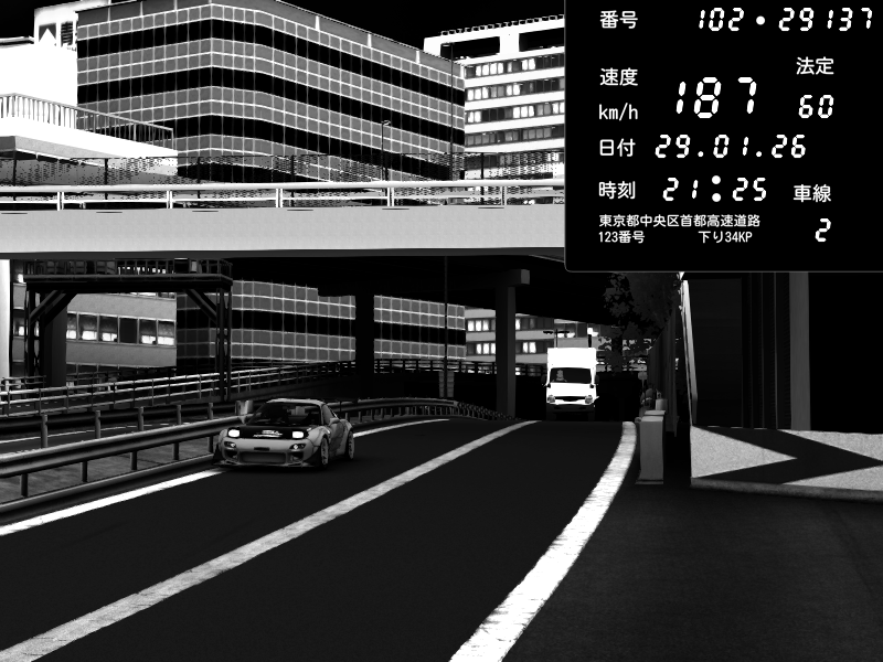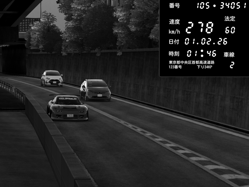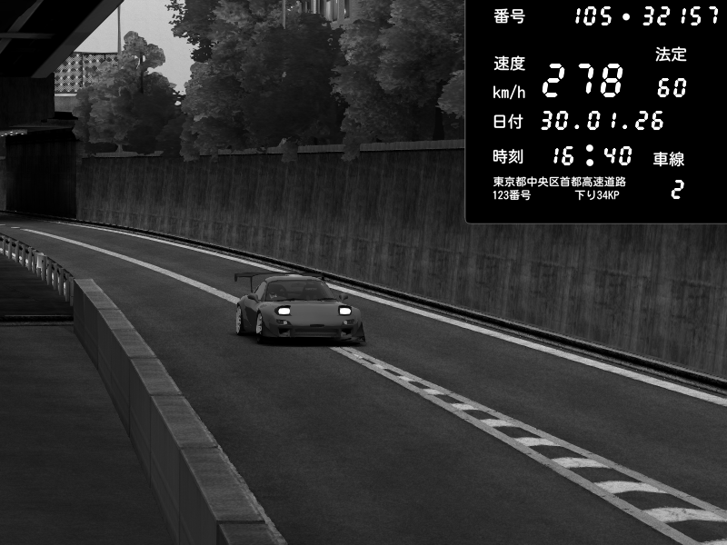 | 2026/01/30 22:19 | C1外回り 新富町 | 170 / 60 km/h | Player | Mazda RX-7 FD3S FEED Afflux GT3 | CAPTURE |