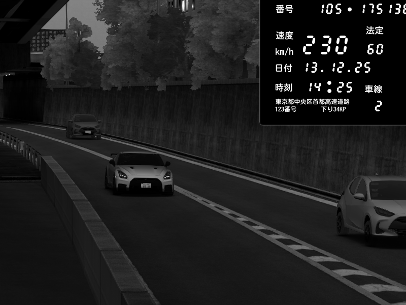 | 2025/12/13 14:15 | C1外回り 芝公園 | 238 / 60 km/h | 👿悪魔の963👿 | Nissan GT-R NISMO 2017 | CAPTURE |