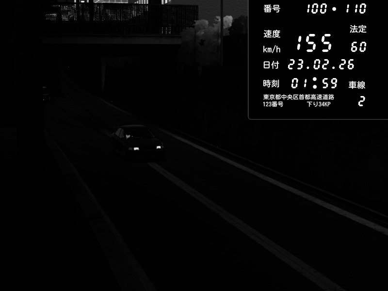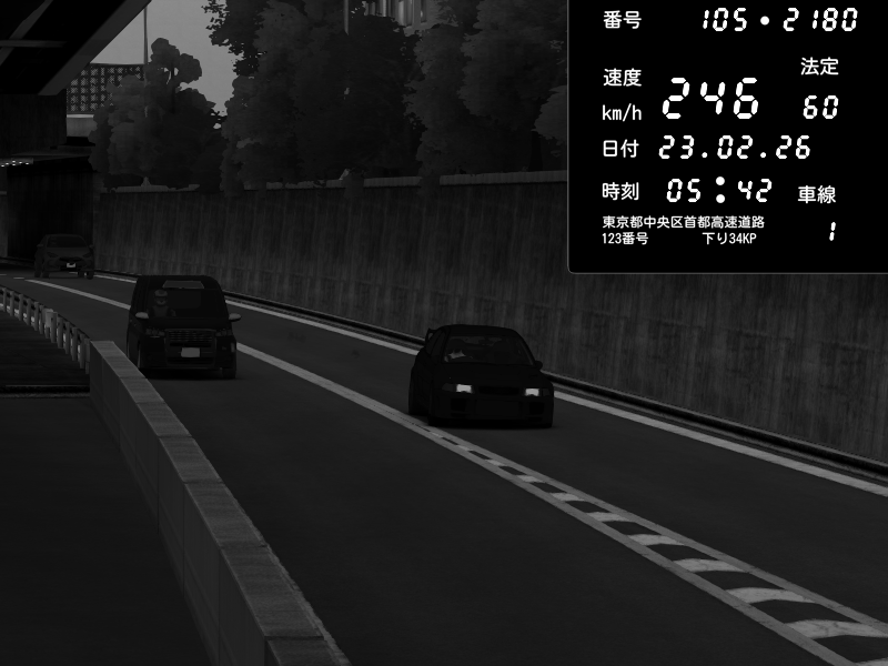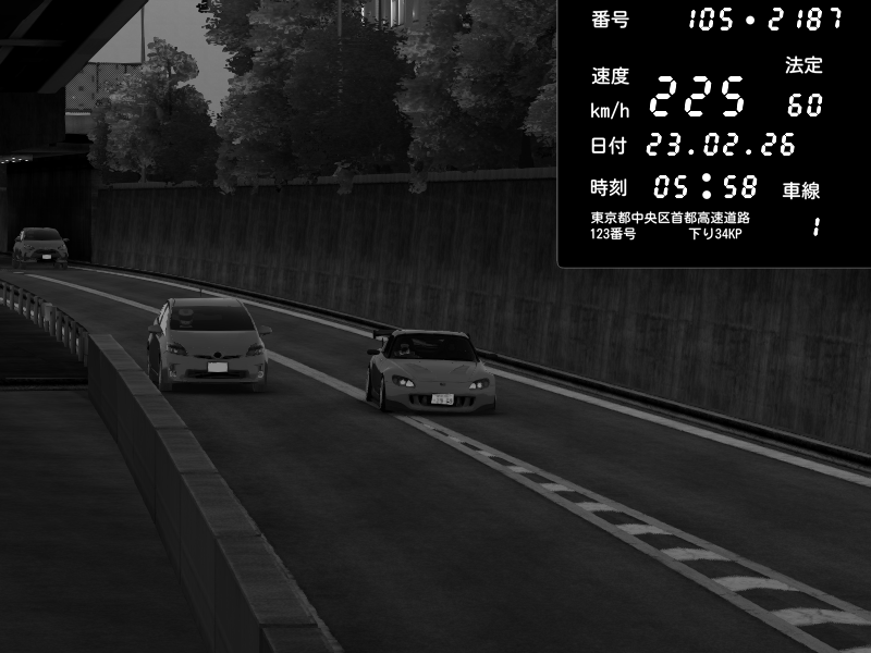 | 2026/02/23 05:58 | C1外回り 京橋 | 225 / 60 km/h | Player | Honda S2000 (AP2 - Legendary) | CAPTURE |