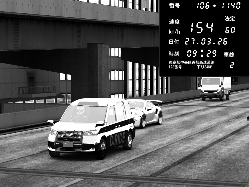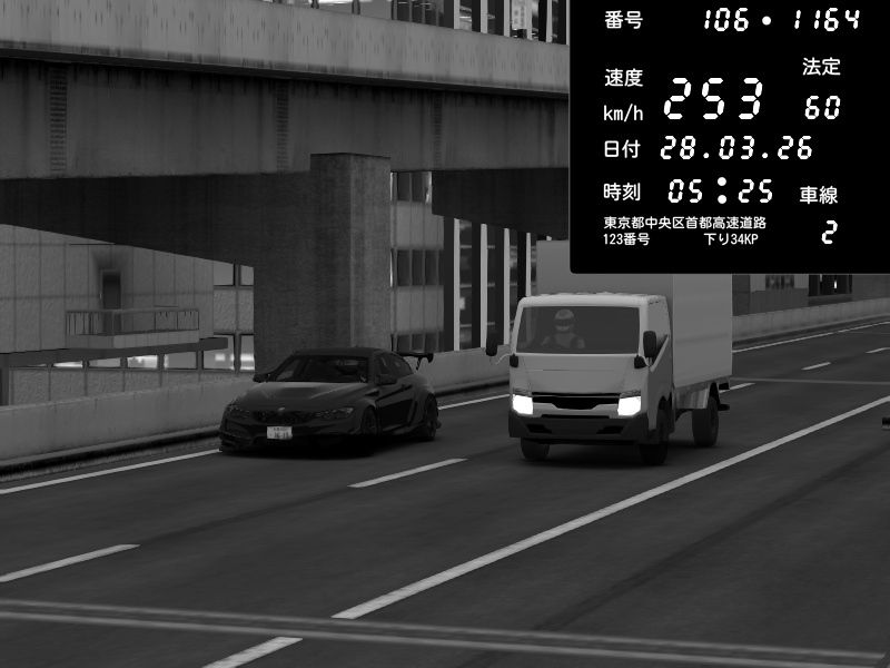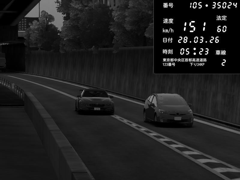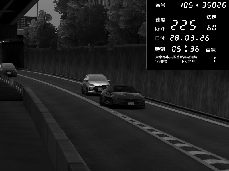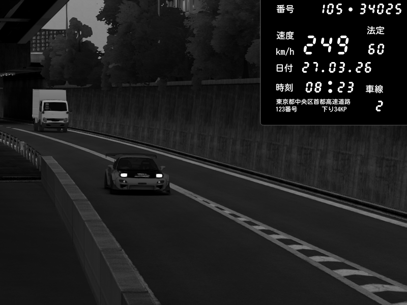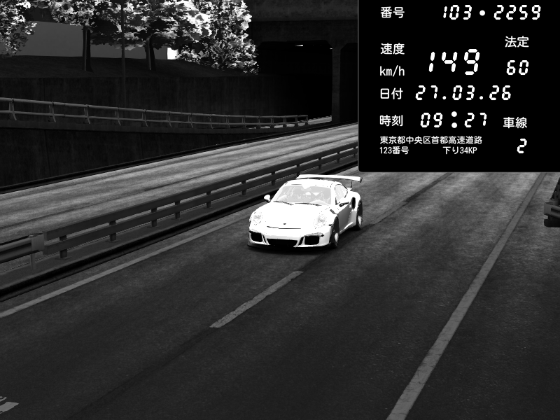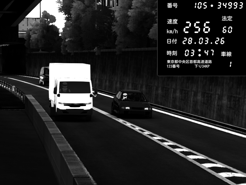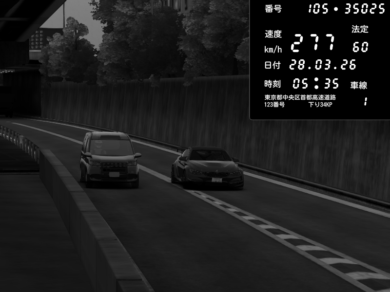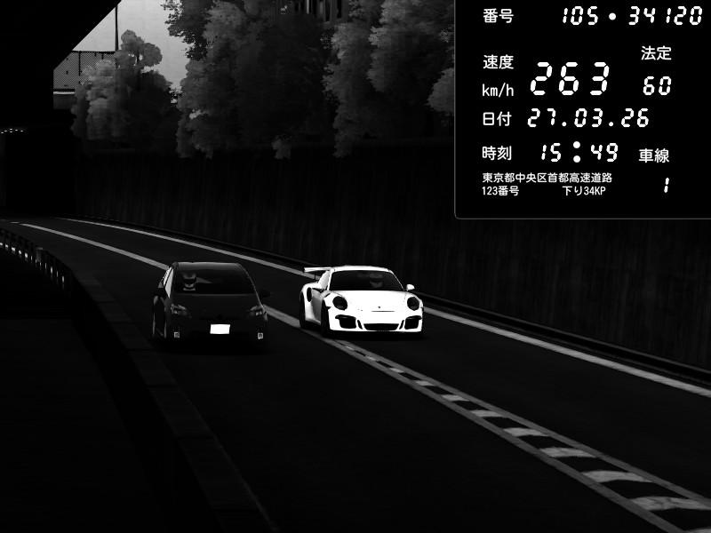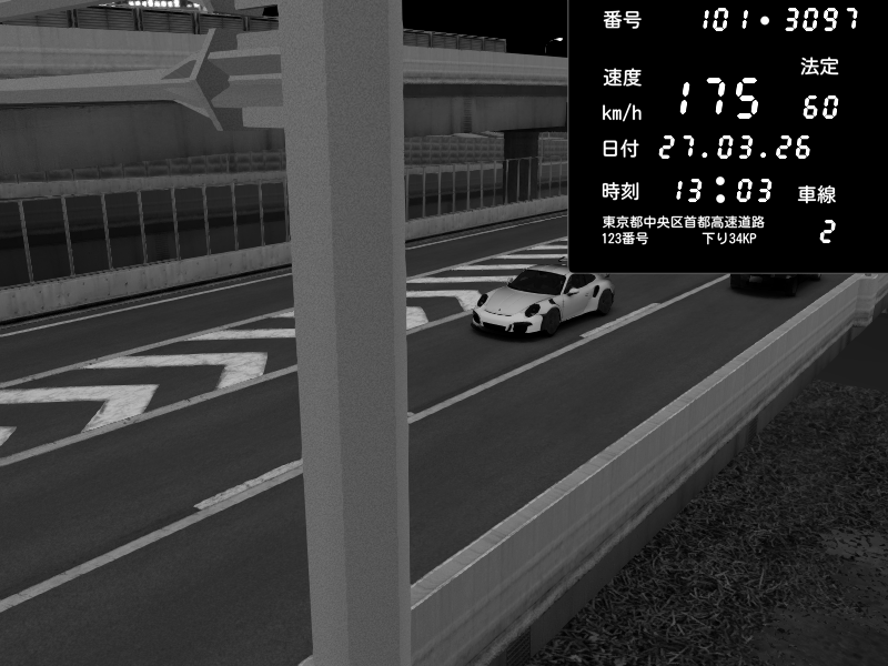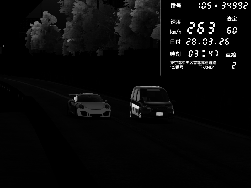 | 2026/03/28 03:47 | C1外回り 京橋 | 263 / 60 km/h | MASUO-JP | Porsche 911 GT3 RS | CAPTURE |