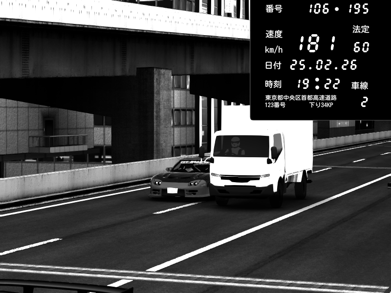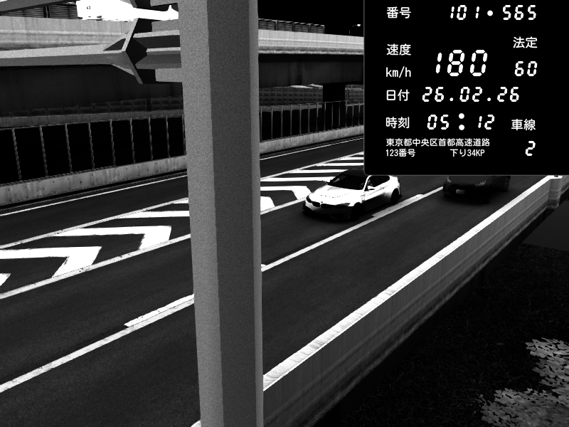 | 2026/02/26 05:06 | C1内回り 竹橋JCT | 196 / 60 km/h | Ribaldo | BMW M4 crash.Sp Varis Widebody | CAPTURE |