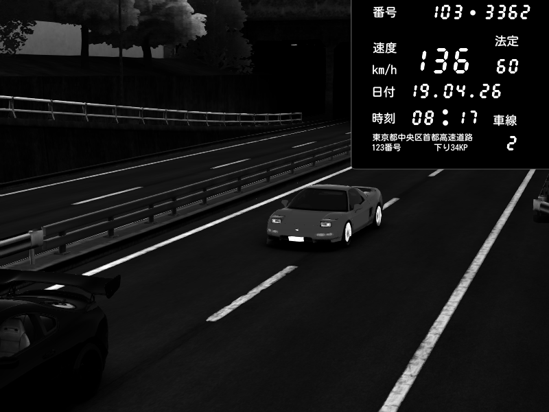 | 2026/04/19 08:17 | C1内回り 銀座 | 136 / 60 km/h | gen kegmire | Honda NSX [NA1] PVLSX | CAPTURE |