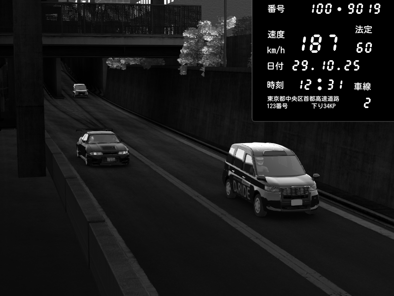 | 2025/10/29 12:31 | C1内回り 京橋 | 187 / 60 km/h | Ghxst | Nissan Skyline GTR R33 (S3 - Wangan) | CAPTURE |