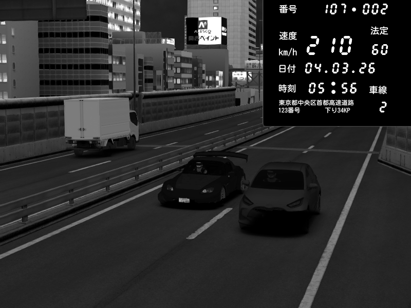 | 2026/03/04 05:40 | C1内回り 京橋 | 172 / 60 km/h | homura | Honda S2000 Turbo GT1 Amuse (AP1) | CAPTURE |