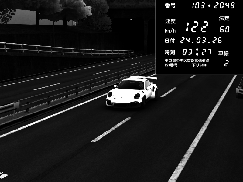 | 2026/03/24 03:27 | C1内回り 銀座 | 122 / 60 km/h | LiLBaoB | Porsche 911 GT3 RS | CAPTURE |