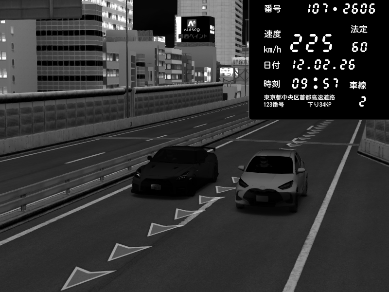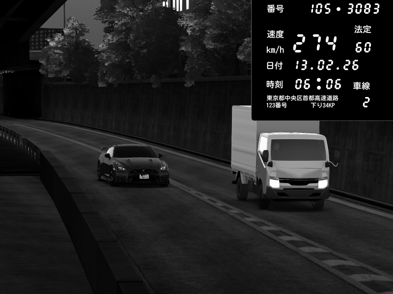 | 2026/02/12 05:38 | C1外回り 京橋 | 209 / 60 km/h | Ficinski | Nissan GT-R NISMO 2017 | CAPTURE |