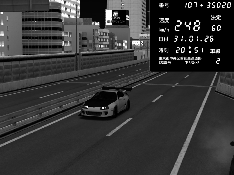 | 2026/01/30 22:20 | C1外回り 芝公園 | 238 / 60 km/h | Player | Honda S2000 Turbo GT1 Amuse (AP1) | CAPTURE |