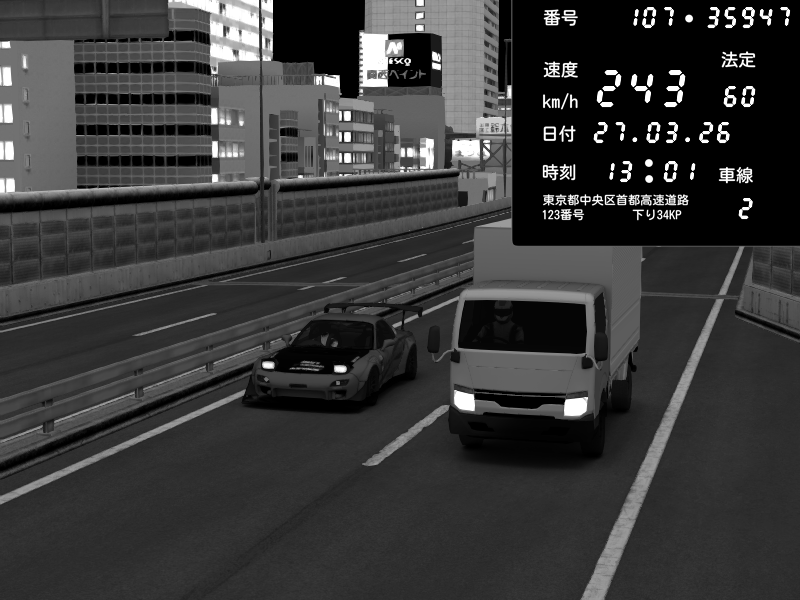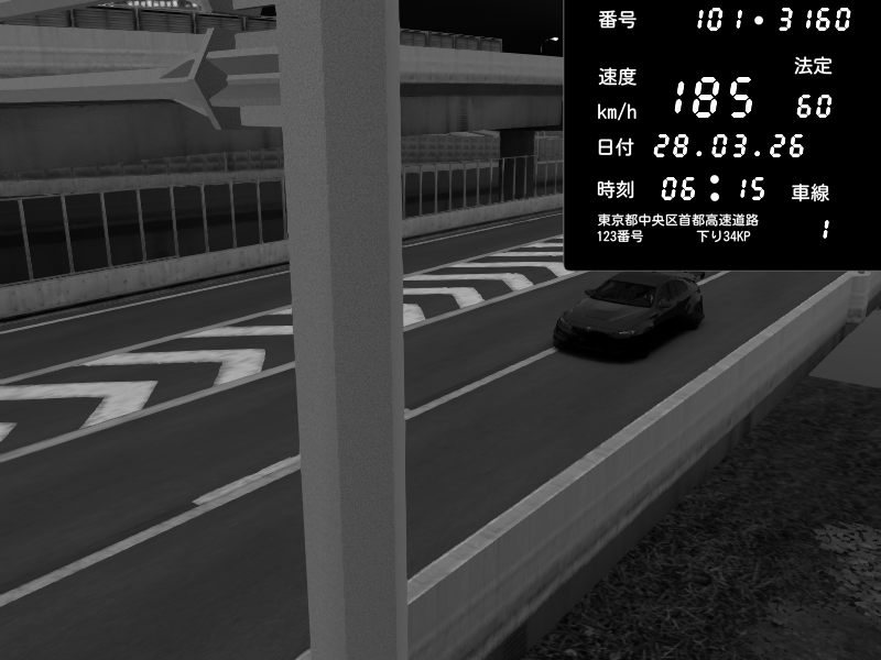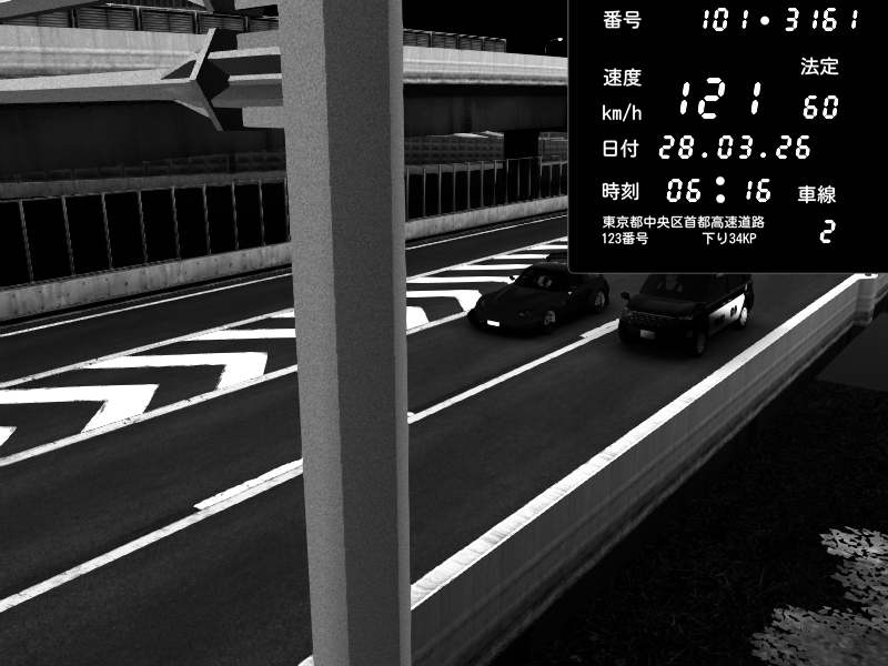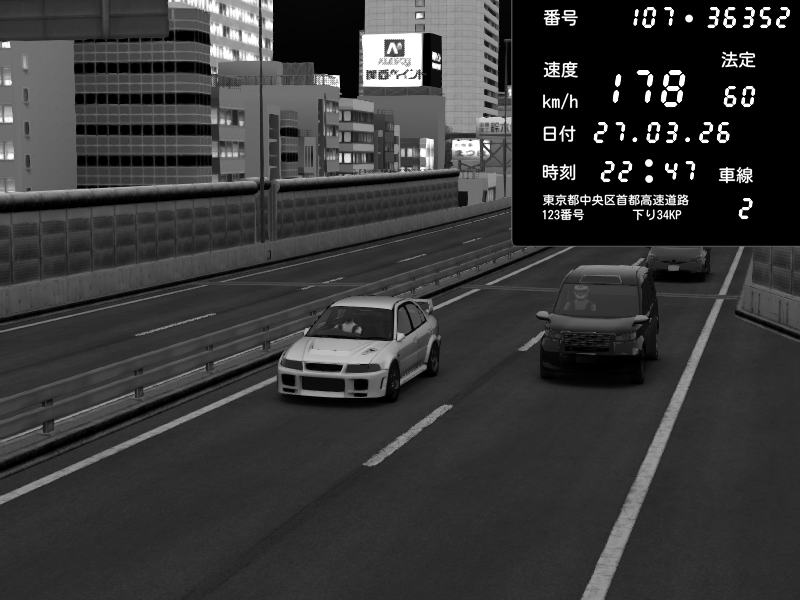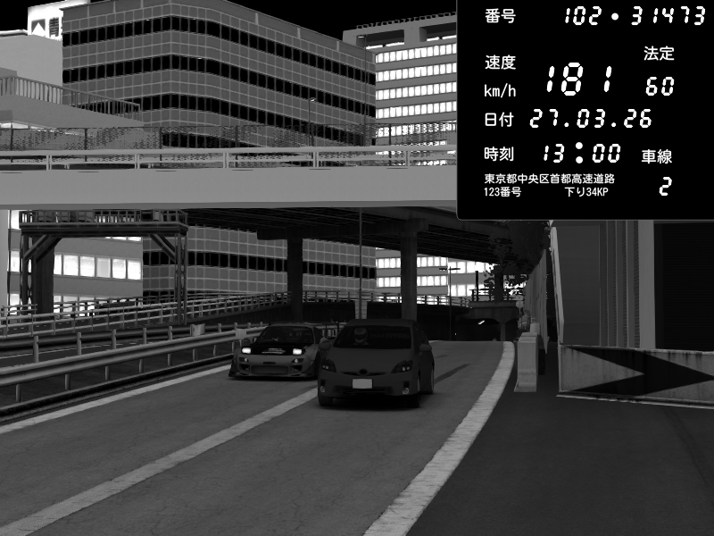 | 2026/03/28 03:47 | C1外回り 新富町 | 131 / 60 km/h | BIBYS | Mitsubishi Lancer Evolution V Wangan Spec | CAPTURE |