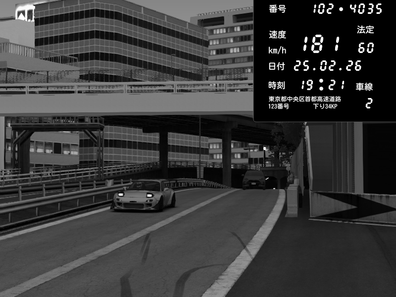 | 2026/02/26 04:57 | C1内回り 京橋 | 111 / 60 km/h | BossCheats | Nissan Skyline GT-R R34 Nismo Omori Factory S1 | CAPTURE |