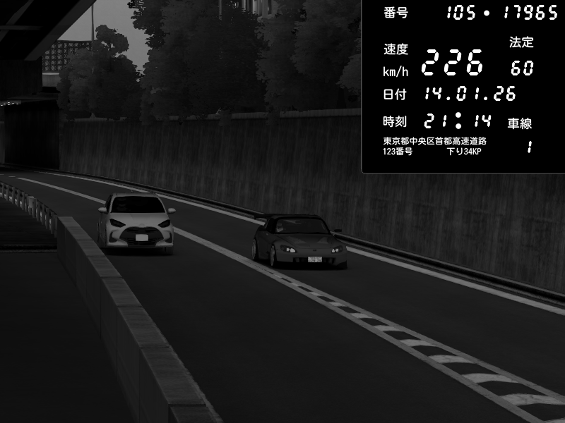 | 2026/01/13 16:25 | C1外回り 芝公園 | 230 / 60 km/h | 黒日本人 | Honda S2000 (AP2 - Legendary) | CAPTURE |