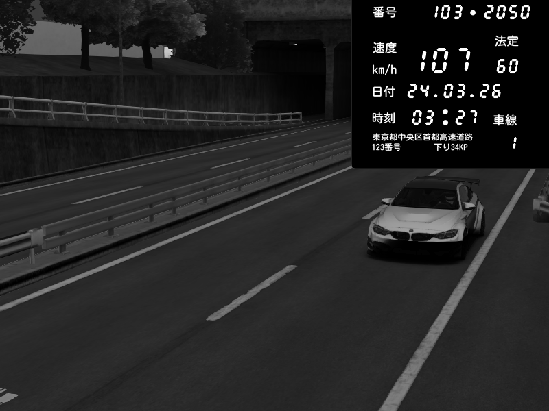 | 2026/03/24 03:27 | C1内回り 銀座 | 107 / 60 km/h | Hennessy | BMW M4 crash.Sp Varis Widebody | CAPTURE |