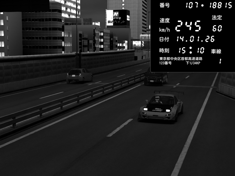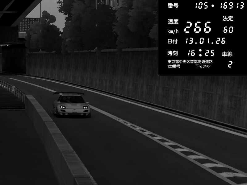 | 2026/01/13 16:26 | C1外回り 京橋 | 266 / 60 km/h | 天使型あーんばる | Mazda RX-7 FD3S RE Amemiya | CAPTURE |