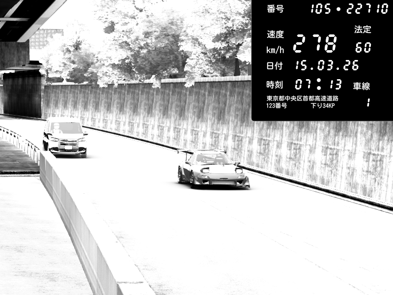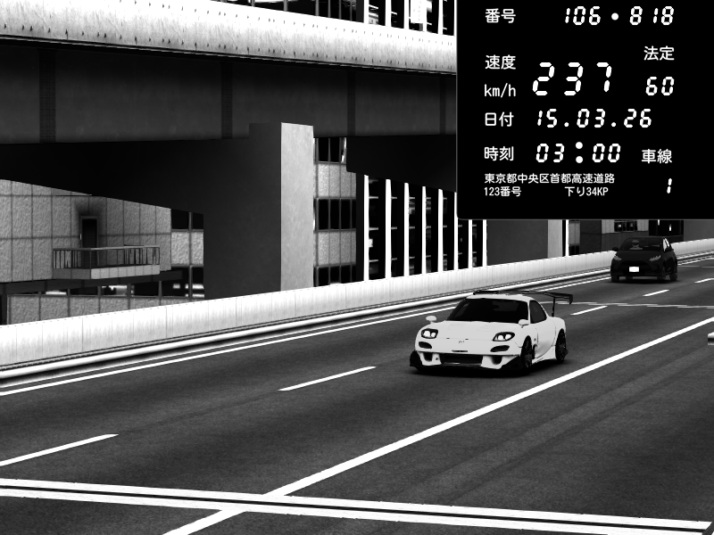 | 2026/03/15 03:00 | C1外回り 京橋 | 278 / 60 km/h | Retuski | Mazda RX-7 FD3S FEED Afflux GT3 | CAPTURE |