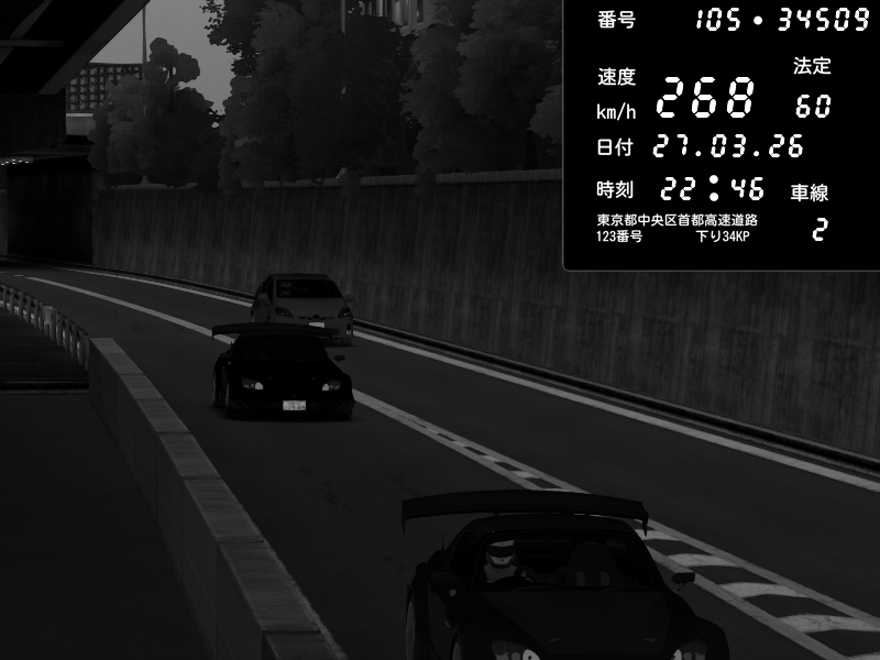 | 2026/03/28 03:47 | C1外回り 新富町 | 178 / 60 km/h | snow_mogul | Honda S2000 (AP2 - Legendary) | CAPTURE |