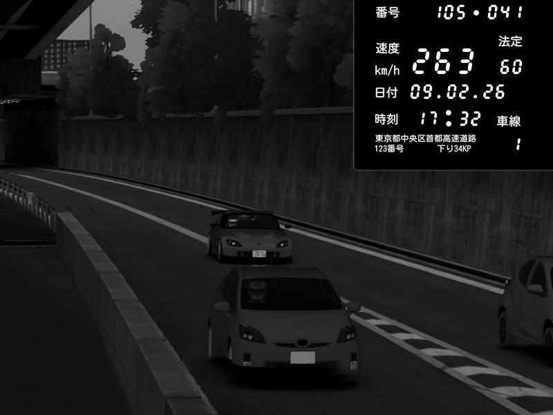 | 2026/02/09 05:47 | C1外回り 京橋 | 262 / 60 km/h | Tatsu72 | Porsche 911 GT3 RS | CAPTURE |