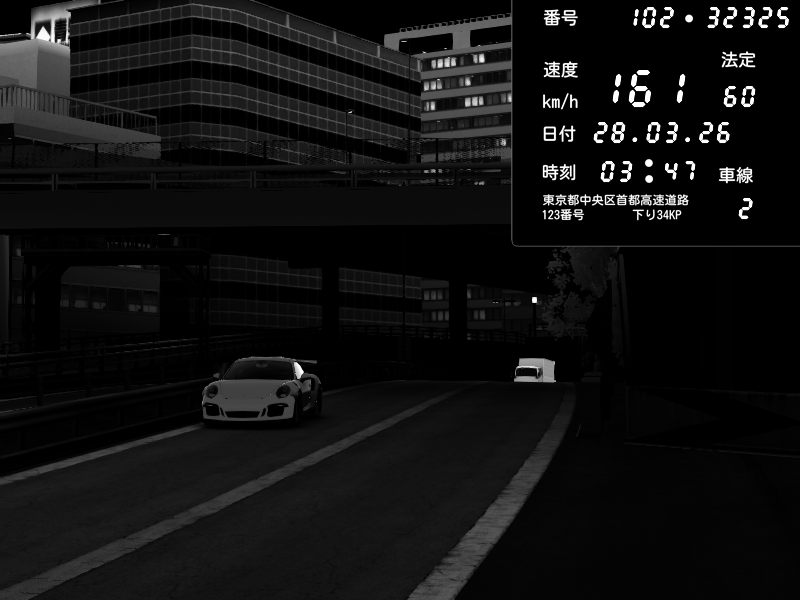 | 2026/03/28 03:47 | C1外回り 新富町 | 161 / 60 km/h | MASUO-JP | Porsche 911 GT3 RS | CAPTURE |