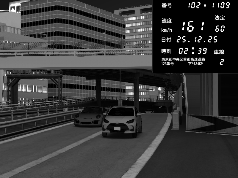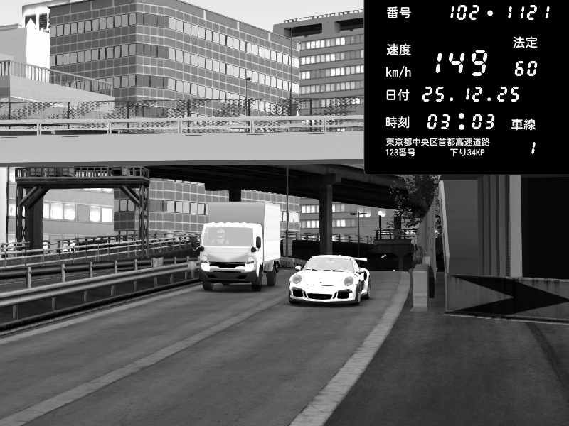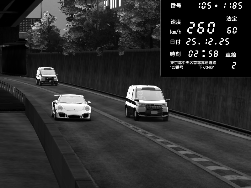 | 2025/12/25 02:53 | C1外回り 京橋 | 234 / 60 km/h | Porsche 911 GT3 RS | CAPTURE |