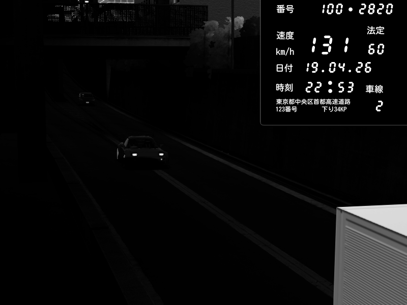 | 2026/04/19 22:54 | C1内回り 竹橋JCT | 174 / 60 km/h | Mazda RX-7 FD3S FEED Afflux GT3 | CAPTURE |