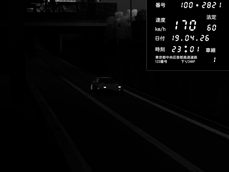 | 2026/04/19 23:00 | C1内回り 銀座 | 200 / 60 km/h | Mazda RX-7 FD3S FEED Afflux GT3 | CAPTURE |