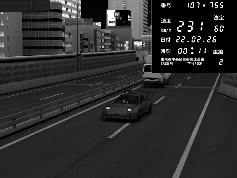 | 2026/02/22 00:31 | C1外回り 京橋 | 260 / 60 km/h | Mazda RX-7 FD3S FEED Afflux GT3 | CAPTURE |