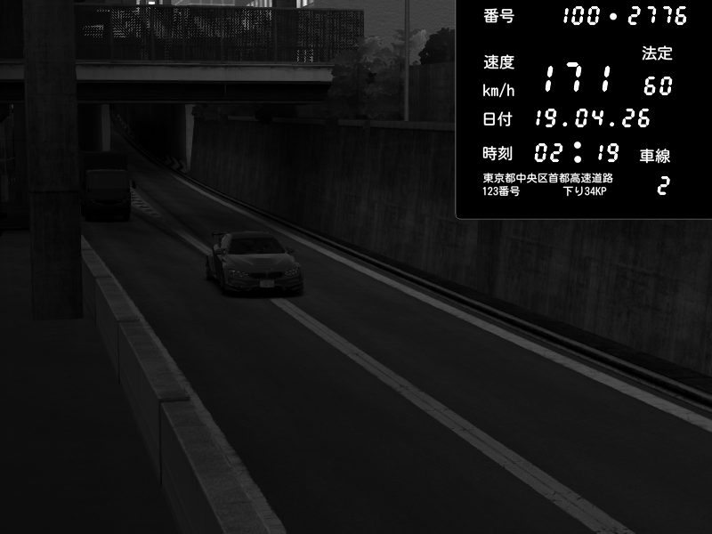| 2026/04/19 02:13 | C1内回り 銀座 | 231 / 60 km/h | BMW M4 crash.Sp Varis Widebody | CAPTURE |