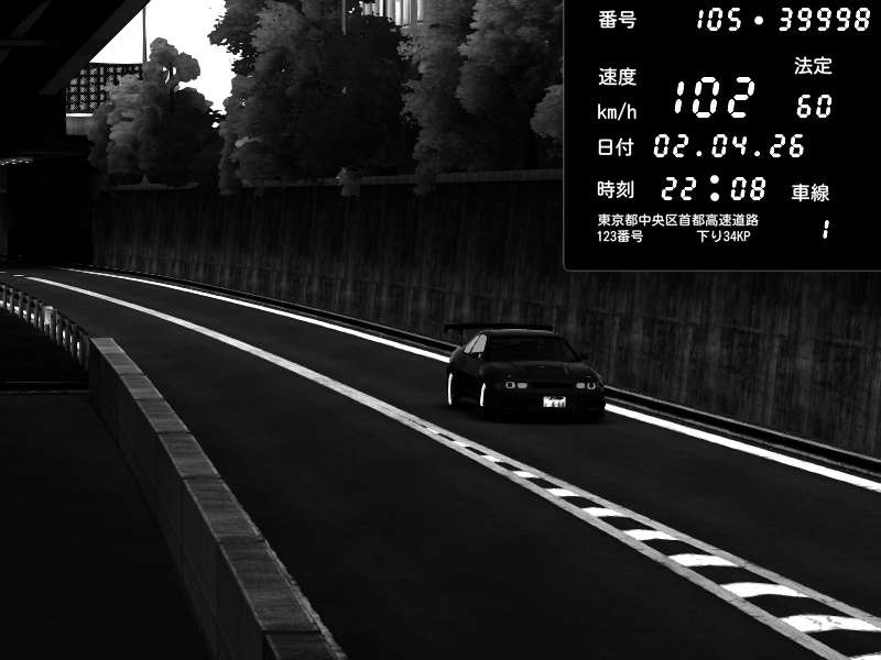 | 2026/04/02 22:08 | C1外回り 京橋 | 102 / 60 km/h | Nissan Skyline GTR R33 (S3 - Wangan) | CAPTURE |
