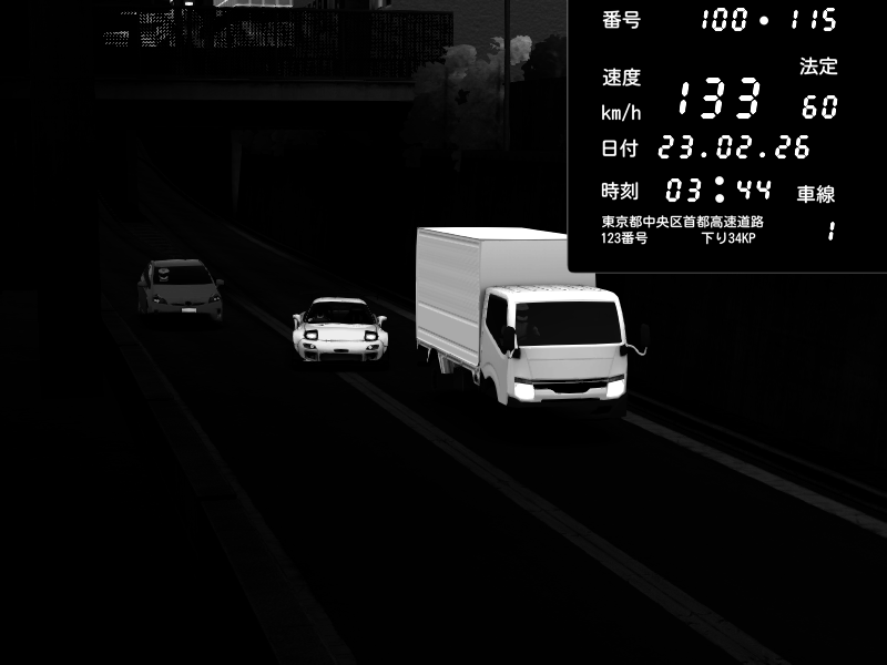 | 2026/02/23 03:45 | C1内回り 竹橋JCT | 160 / 60 km/h | Mazda RX-7 FD3S FEED Afflux GT3 | CAPTURE |