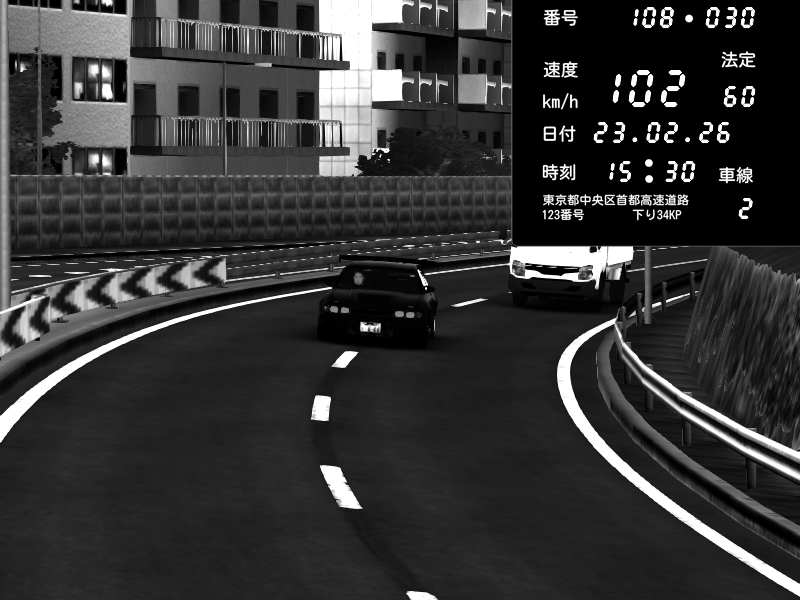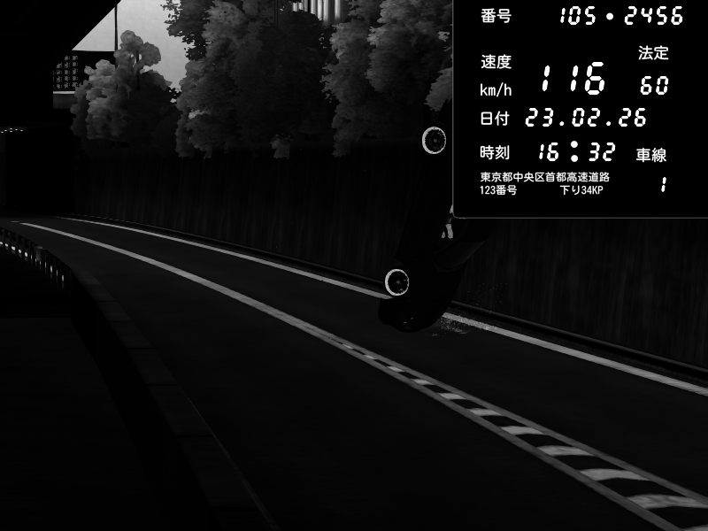 | 2026/02/23 15:30 | 4号下り 代々木 | 102 / 60 km/h | Nissan Skyline GTR R33 (S3 - Wangan) | CAPTURE |
