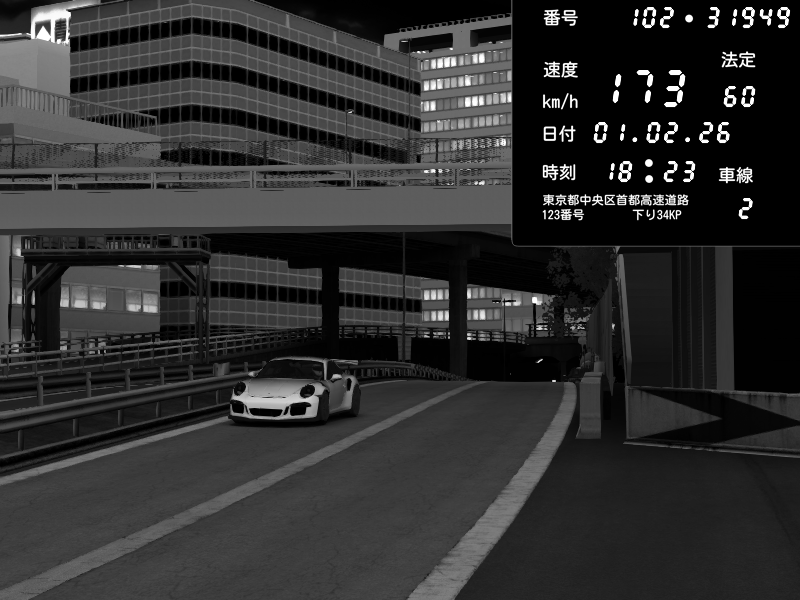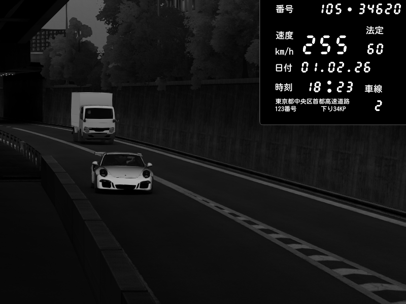 | 2026/02/01 18:23 | C1外回り 京橋 | 255 / 60 km/h | Porsche 911 GT3 RS | CAPTURE |