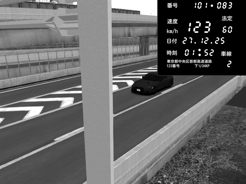 | 2025/12/27 01:52 | C1内回り 竹橋JCT | 123 / 60 km/h | Nissan GT-R NISMO 2017 | CAPTURE |