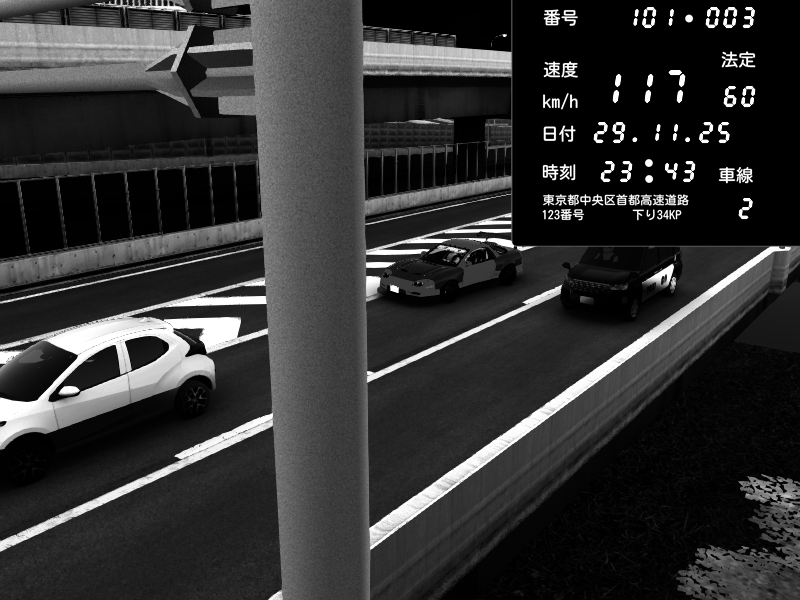 | 2025/11/29 23:43 | C1内回り 竹橋JCT | 117 / 60 km/h | Pit Road M - Mitsubishi GTO Twin Turbo | CAPTURE |