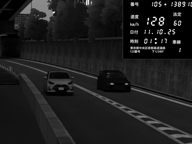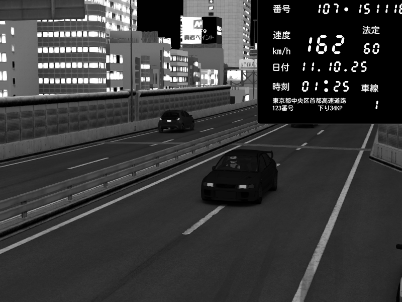 2025/10/11 01:17 | C1外回り 京橋 | 128 / 60 km/h | Mitsubishi Lancer Evolution V Wangan Spec | CAPTURE |
