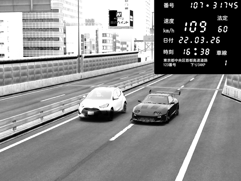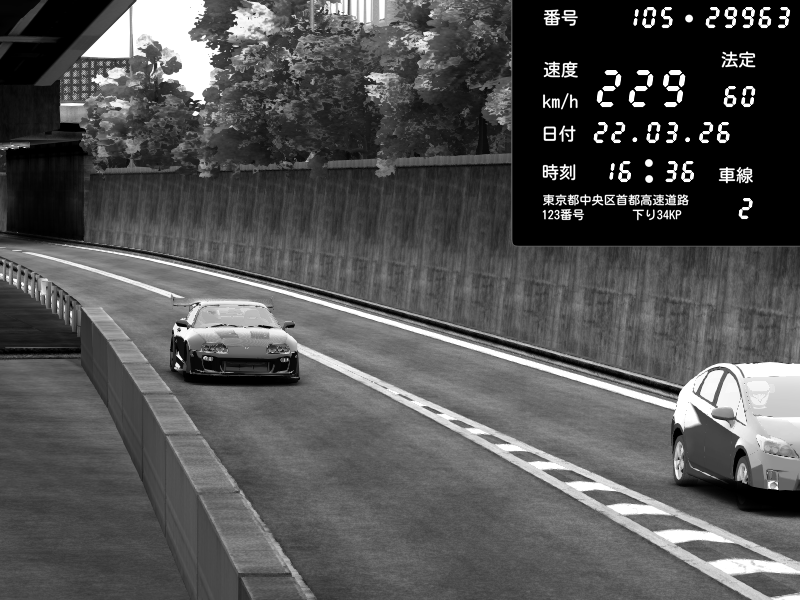 | 2026/03/22 16:36 | C1外回り 京橋 | 229 / 60 km/h | Toyota Supra MKIV Time Attack | CAPTURE |